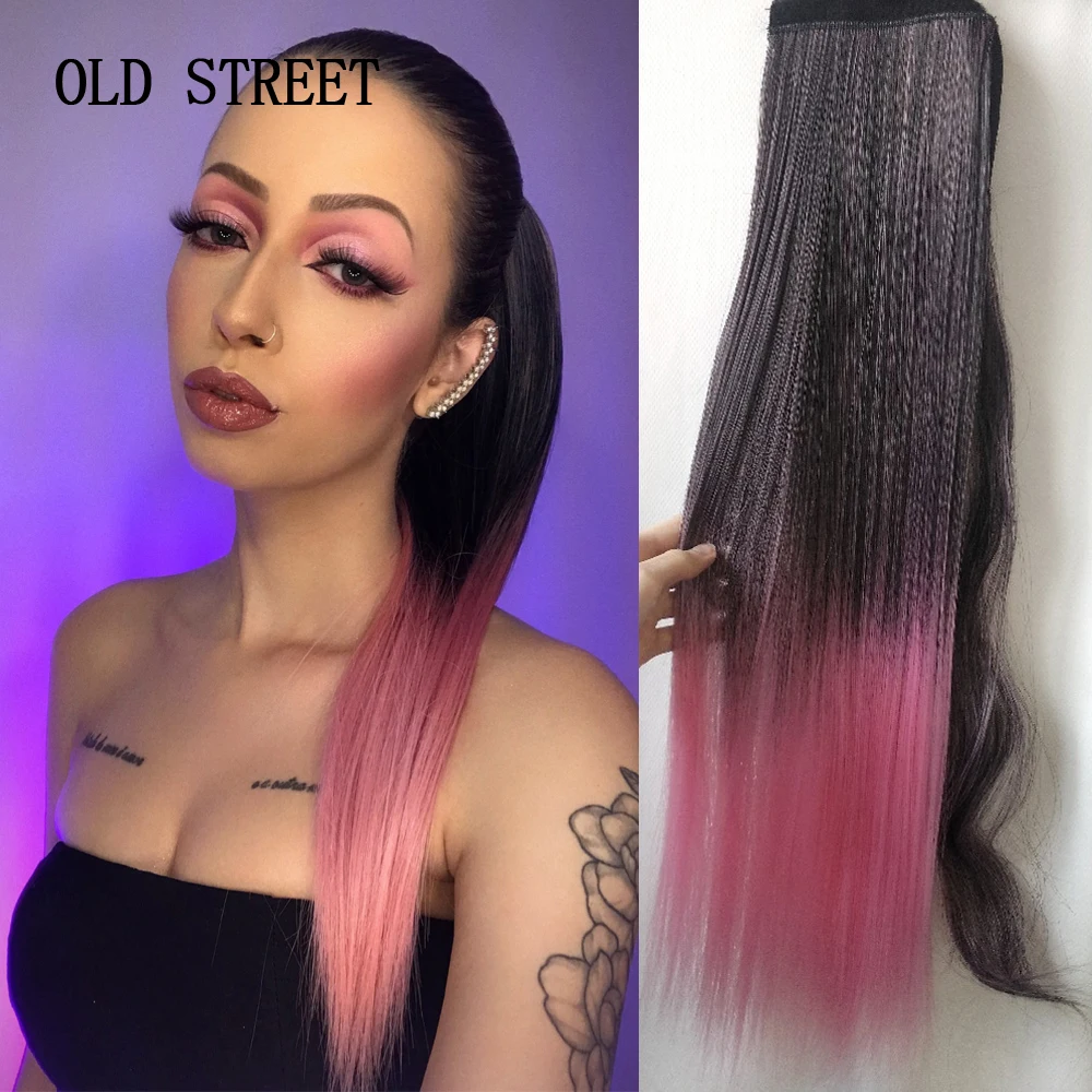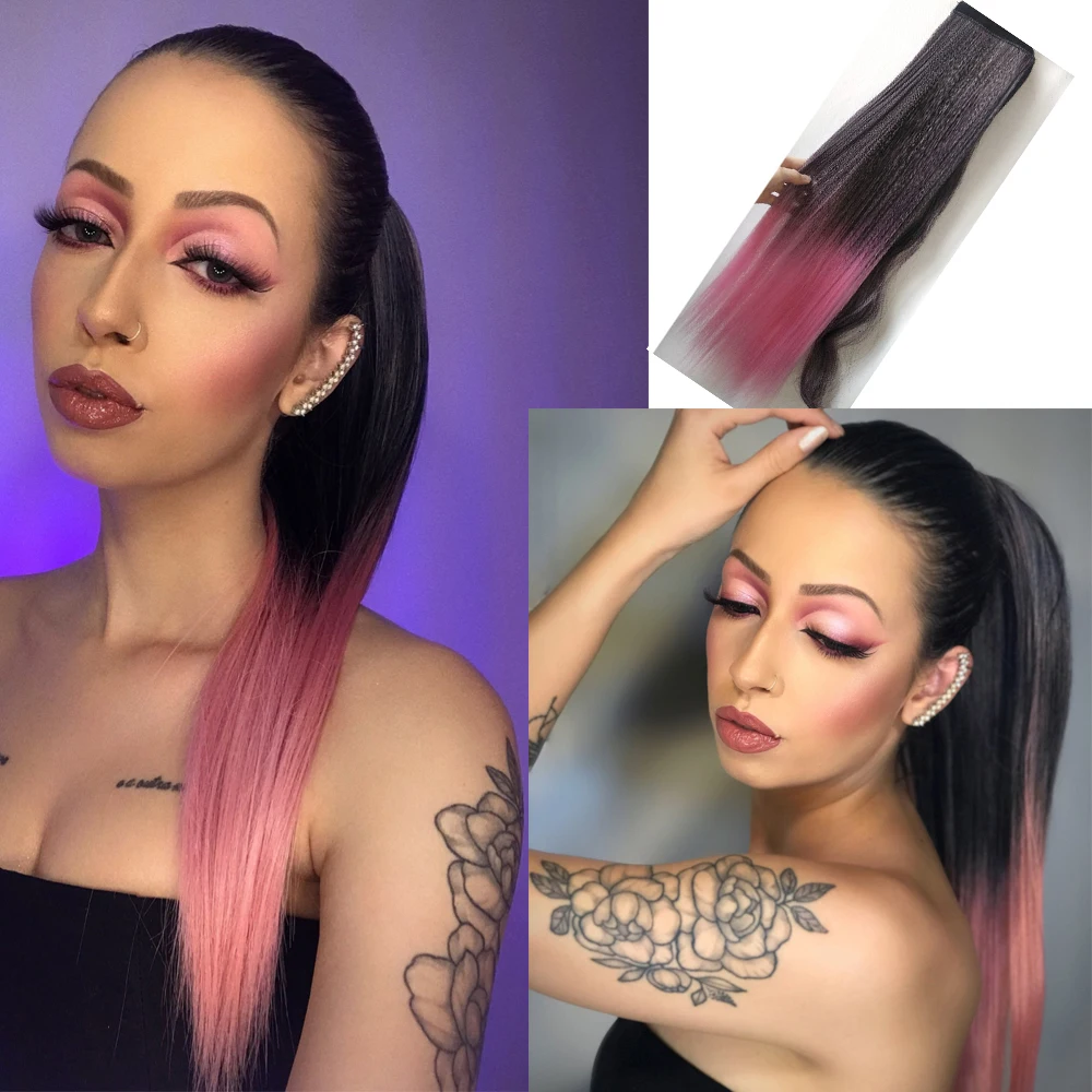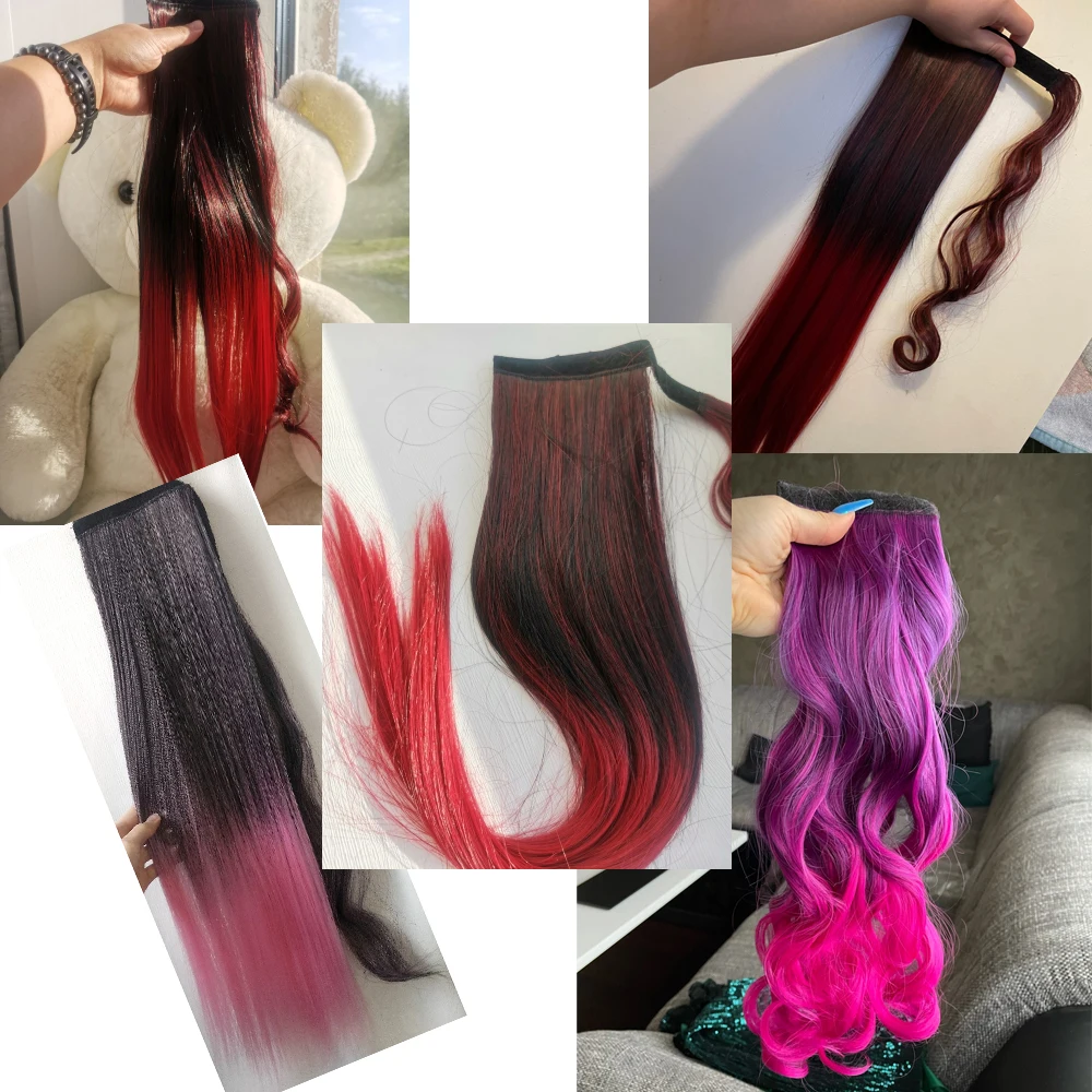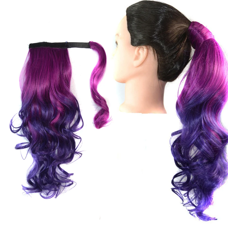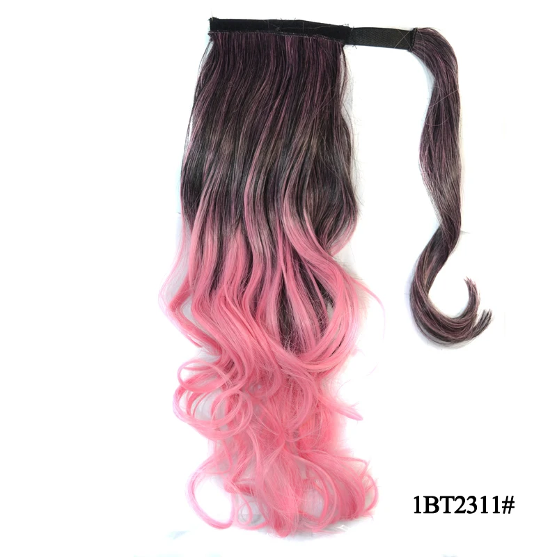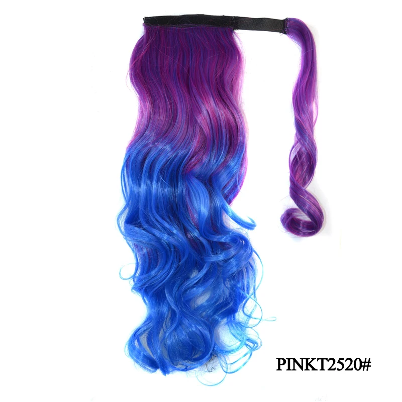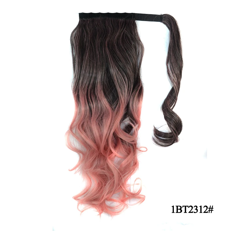 Синтетические хвостики для прически накладные волосы на заколках для наращивания Омбре красочные объемные волнистые конские волосы 22 дюйма 100 г для женщин вечерние