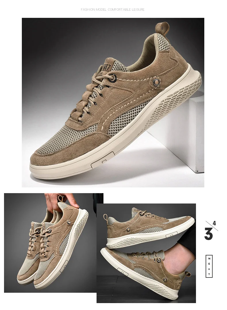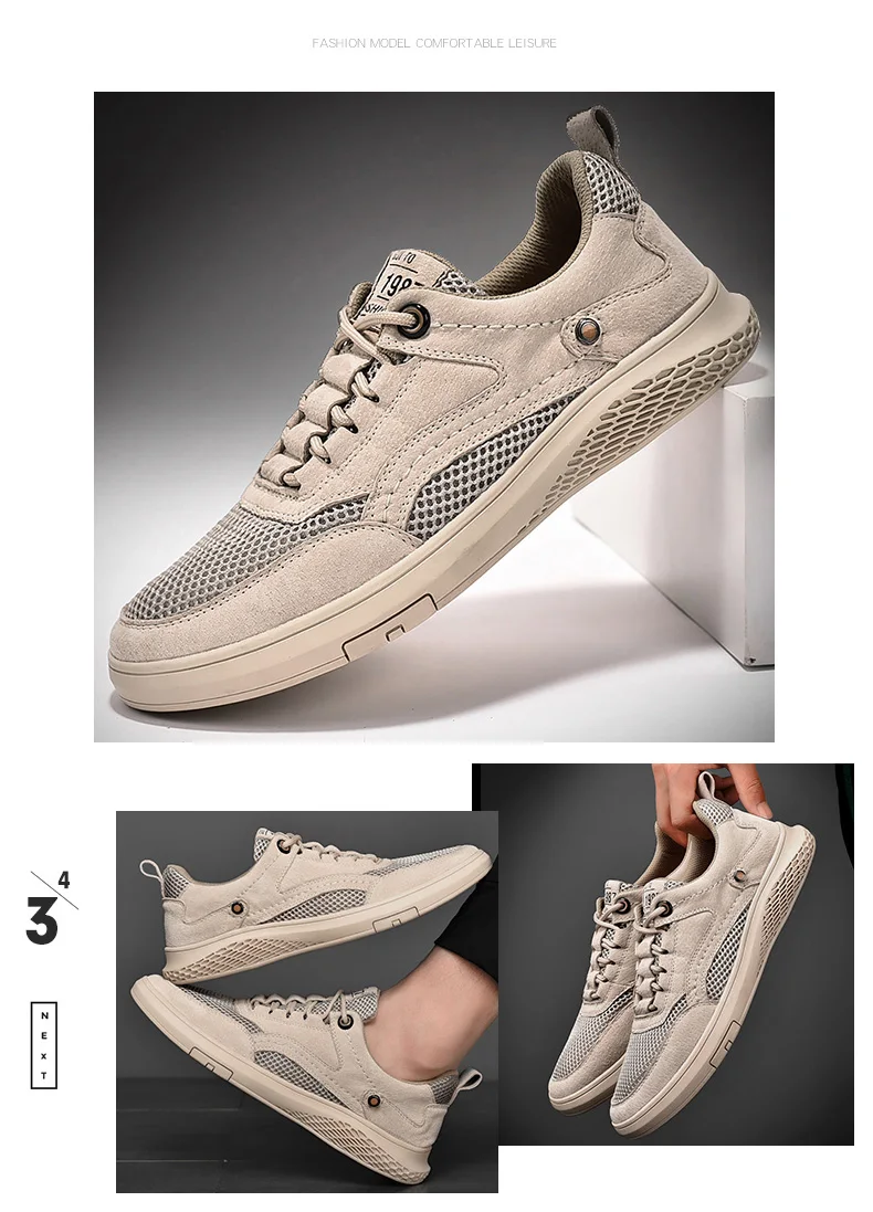 Кроссовки мужские кожаные, дышащие, на плоской подошве, весна-лето