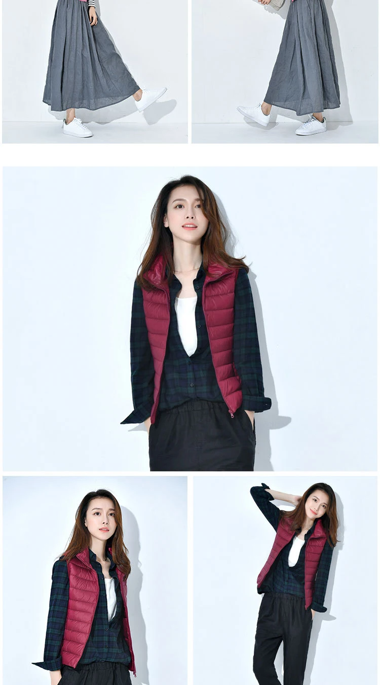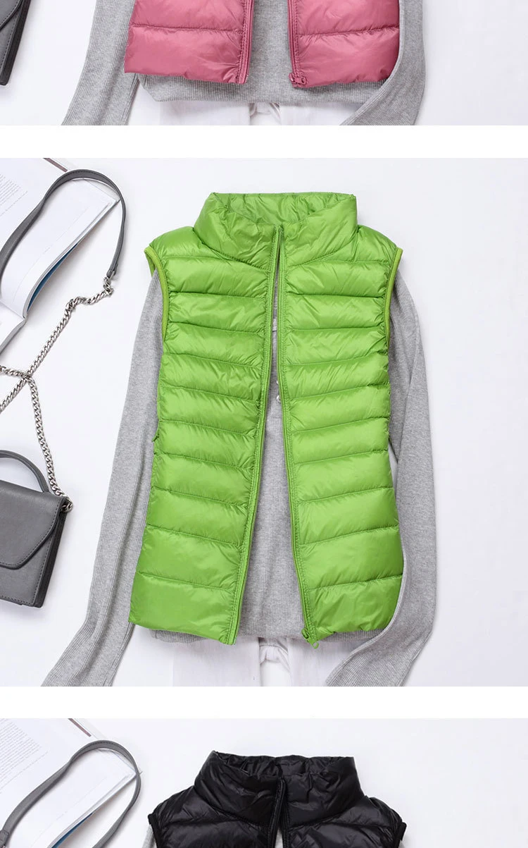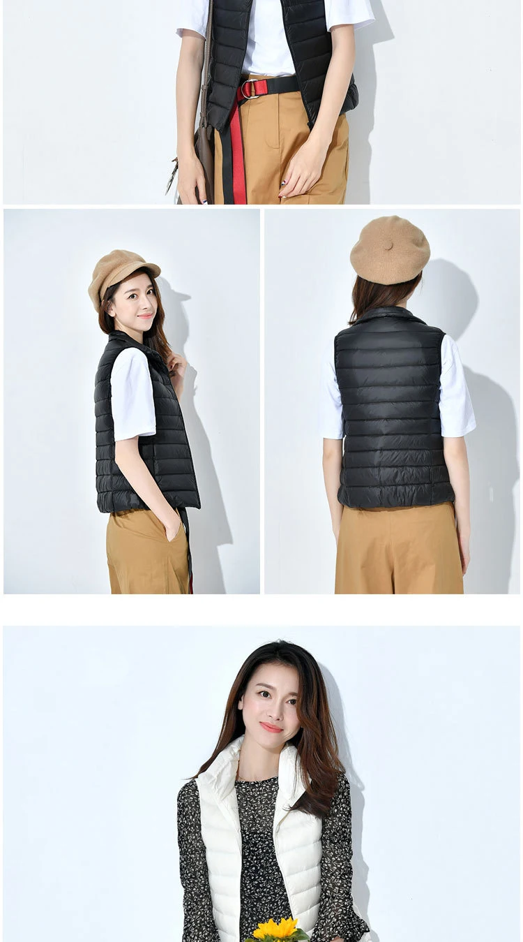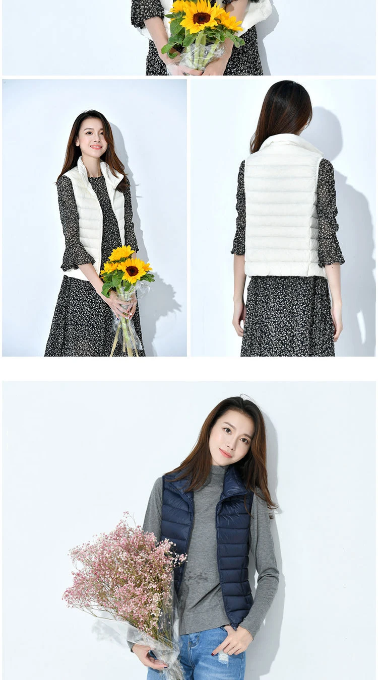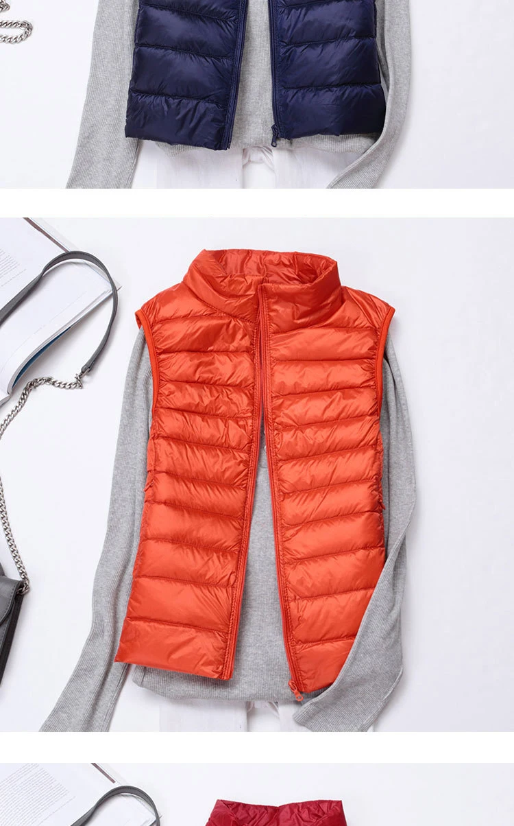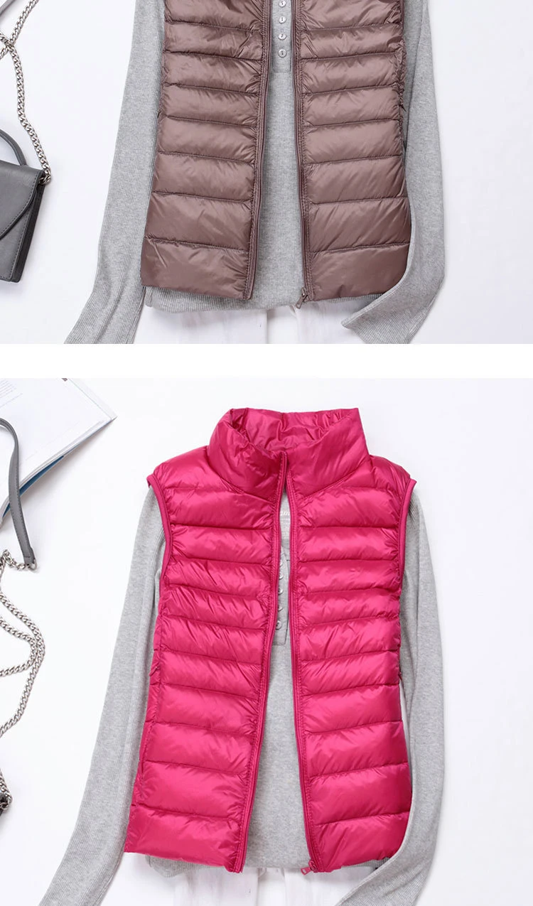 Пуховик женский зимний, ультралегкий, на утином пуху, без рукавов, ветрозащитный, теплый