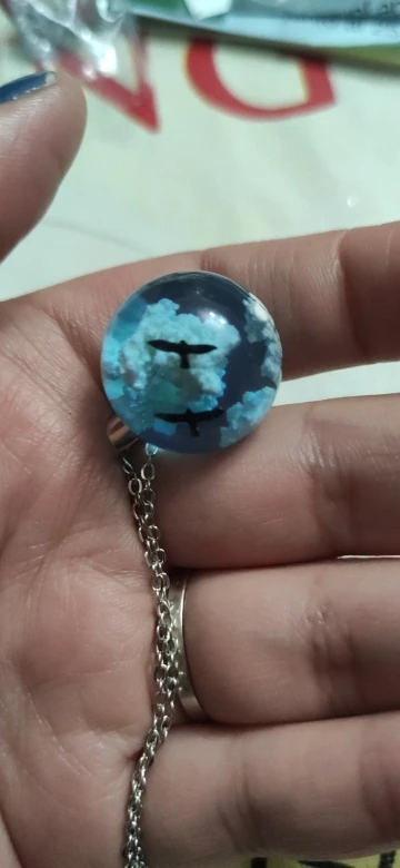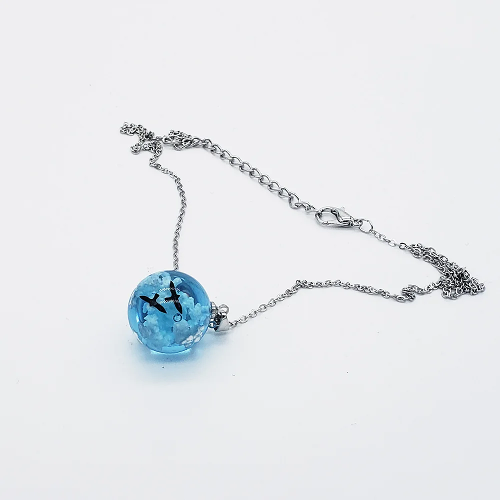 Ожерелье с подвеской в виде шара из смолы с голубым небом и белым о...