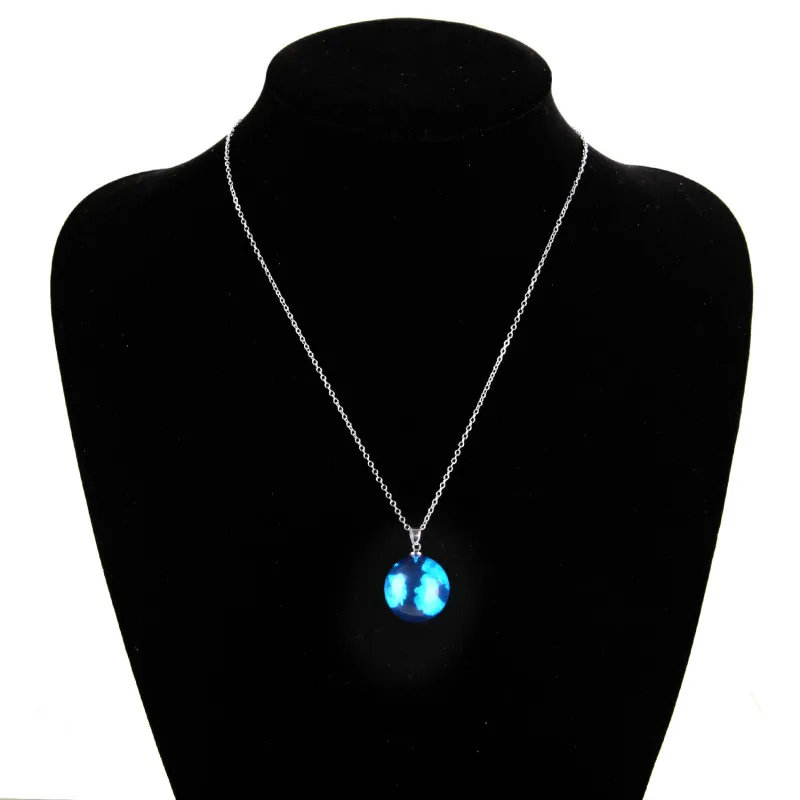 Ожерелье с голубым ночным светом, звездное небо, созвездие, светящиеся в темноте, Женский стеклянный камень, круглый подарок на день рождения, банджи