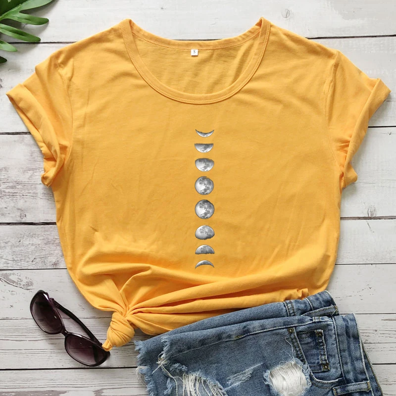 Футболка унисекс с цветным принтом лунных фаз, модный топ с астрономическим графическим принтом, смешная футболка с коротким рукавом с натуральным явлением