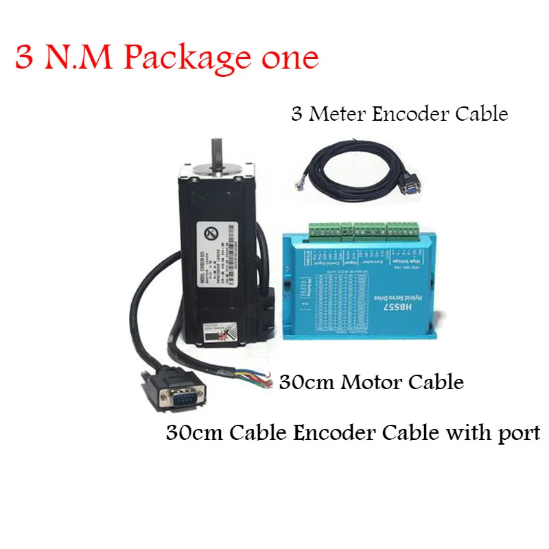 Посылка 1 : 1 шаговый двигатель HBS57 + 1 57HSE3N 3N.M. Мотор + 1x30 см кабель энкодера (с портом) + 1x30 см кабель двигателя + 1 x подарок: 3 м кабель энкодера