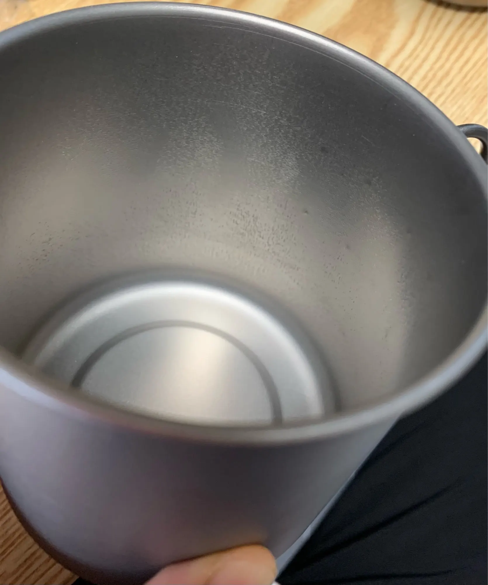 Пришел через месяц. Очень легкий, я не знаю, действительно ли он титановый или просто алюминиевый, но кажется легальным. Будьте внимательны при заказе размера, так как например, 650 мл-это в основном Чашка 500 мл. 650 будет вплоть до края.