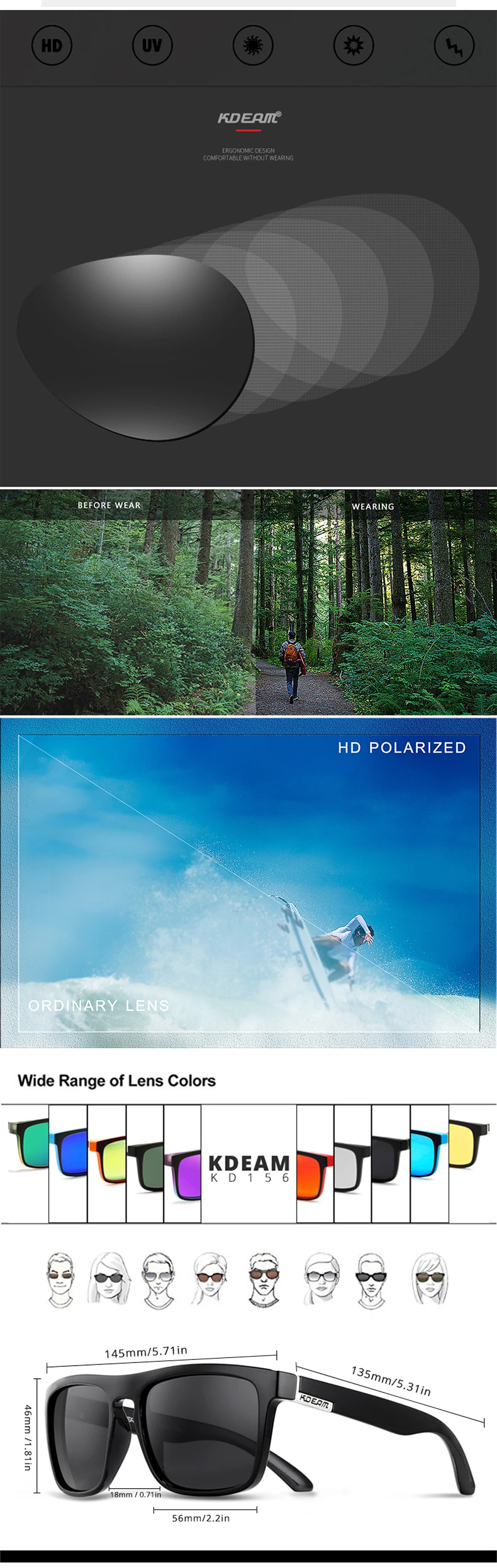 Очки солнцезащитные KDEAM с фотохромными линзами для мужчин и женщин, Поляризационные солнечные аксессуары для вождения в темное время суток, CE X11