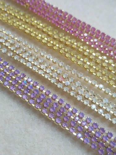 Отправлено и доставлено быстро. Стразовая лента очень нежная и красивая. Цвет мятный с голубоватым переливом. Из минусов большое расстояние между звеньями. Размер брала самый маленький, так как использую для изготовления брошей. Она реально очень мелкая.