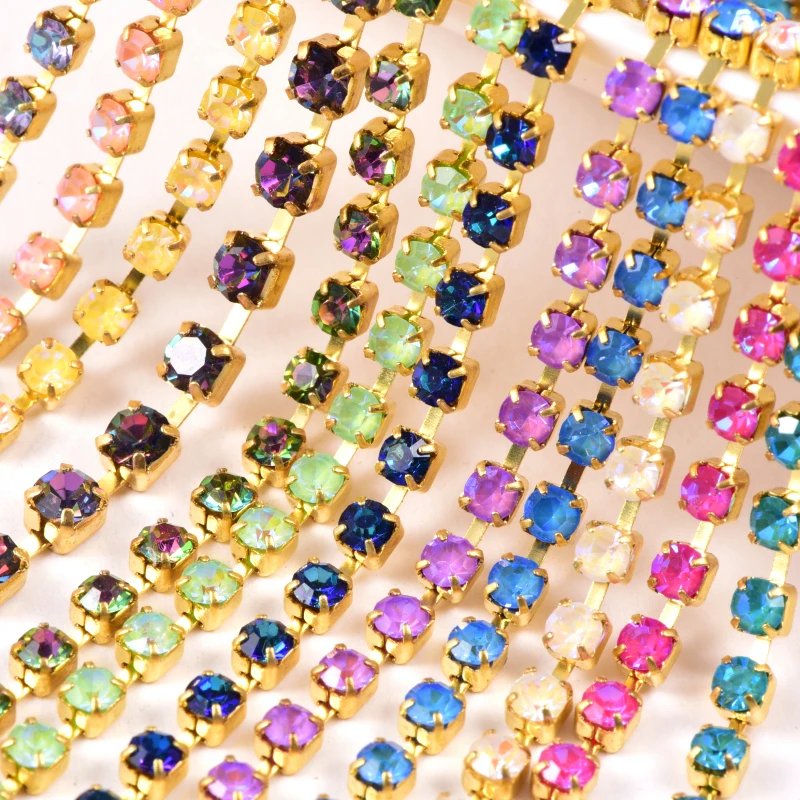 1 ярд мокко неоновый стеклянные кристаллы, стразы чашка цепочка дальнего коврика K9 стеклянная Золотая основа отделка для DIY одежды сумки украшения F0270