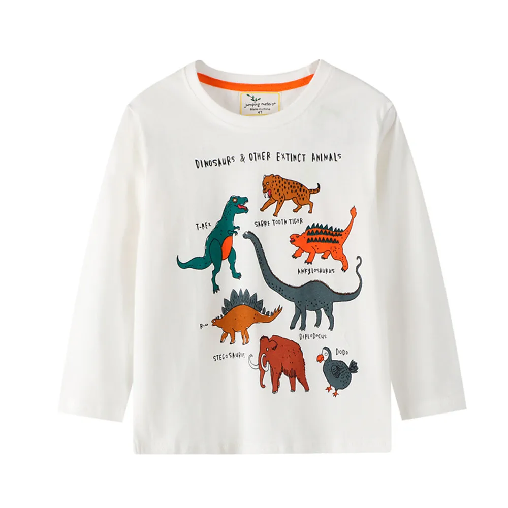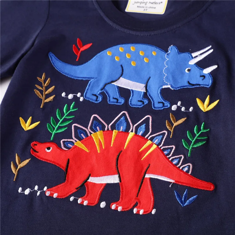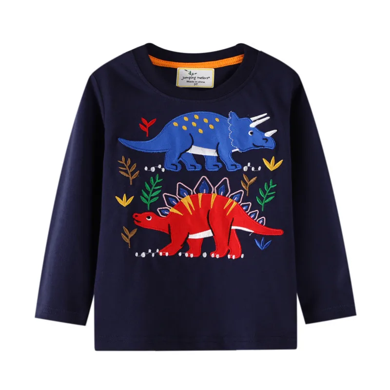 Jumping MetersДетские футболки с длинными рукавами, хлопковая одежда с аппликацией динозавра для мальчиков и девочек 2020, детские футболки