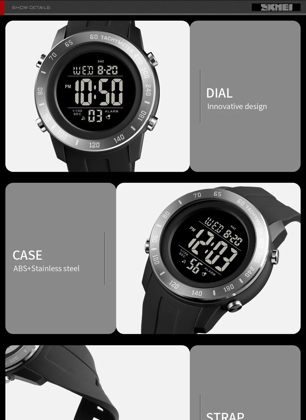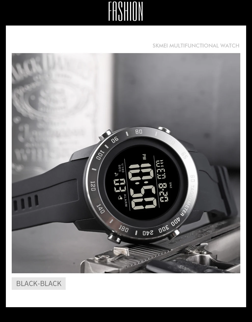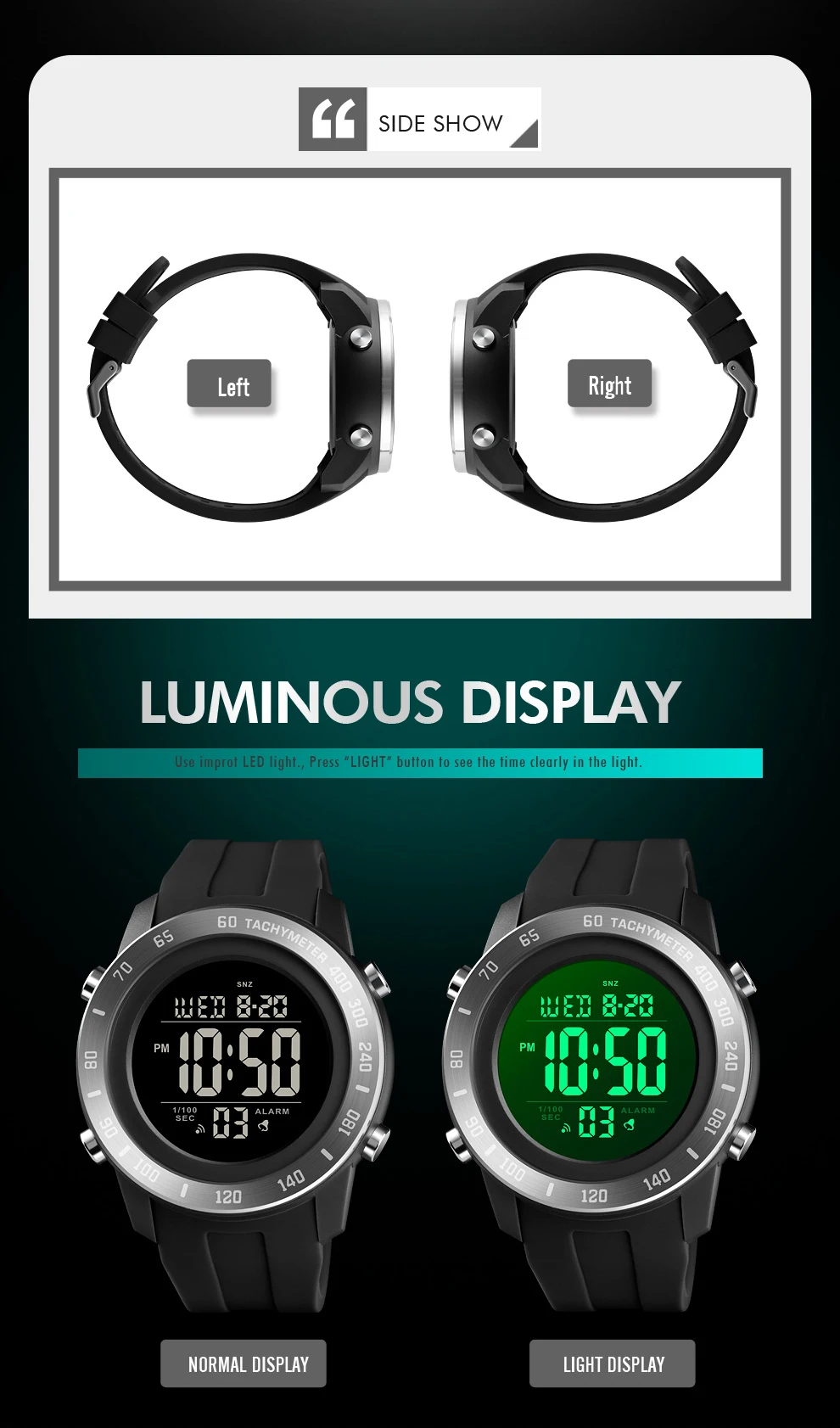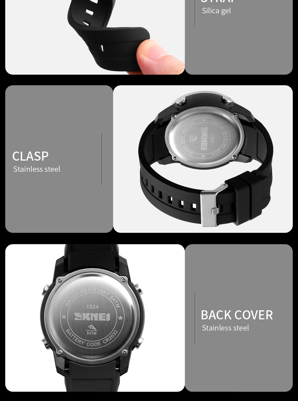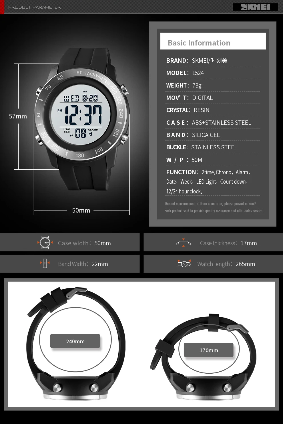 SKMEI 1524 модные силиконовые спортивные часы с большим циферблатом, цифровые часы, водонепроницаемые светодиодные мужские электронные наручные часы с хронографом и будильником