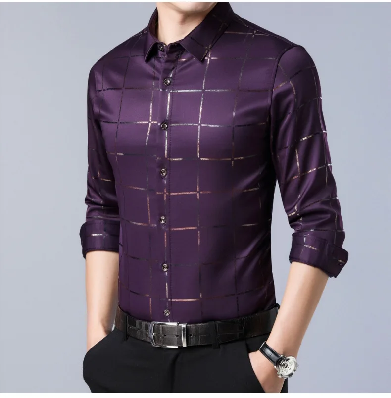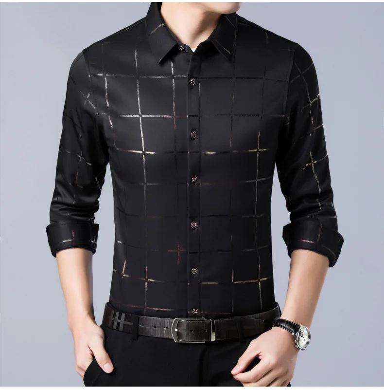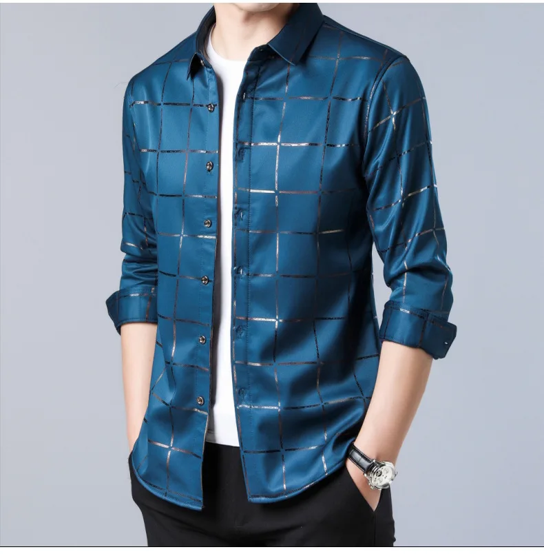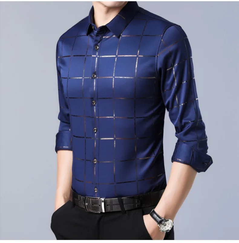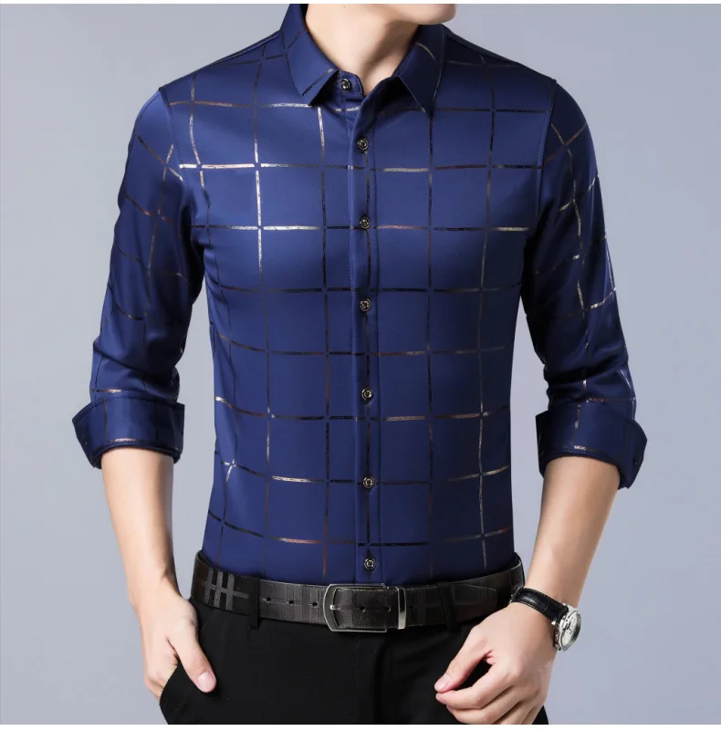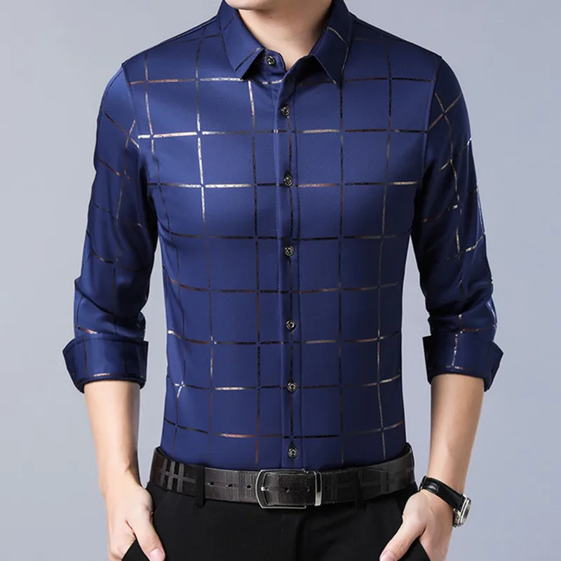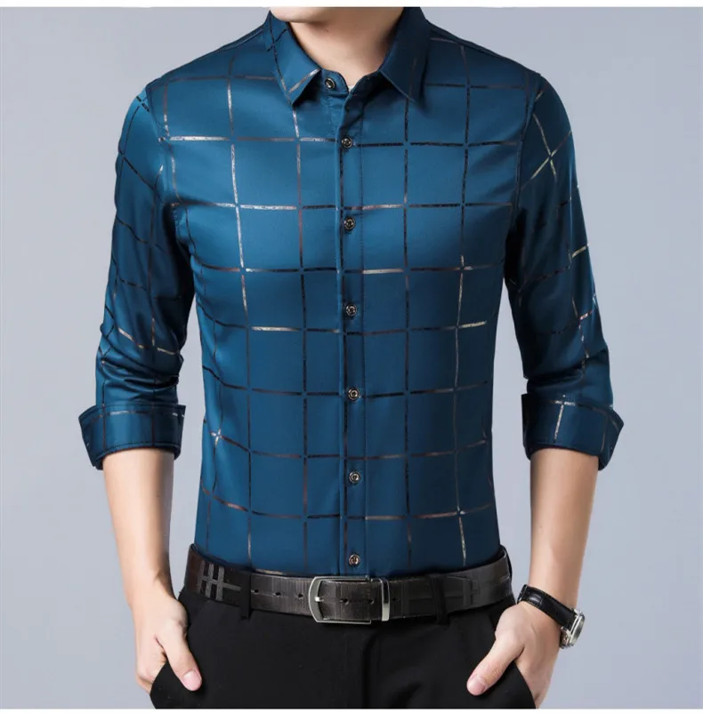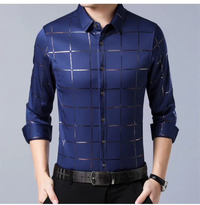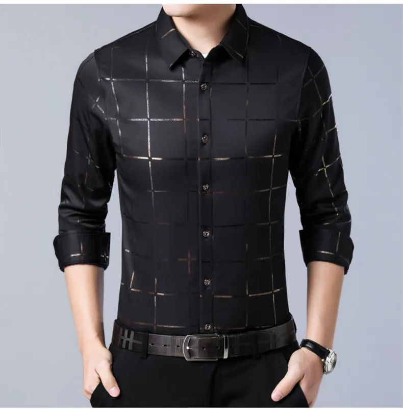 Рубашка мужская повседневная с длинным рукавом, брендовая люксовая приталенная, Классическая в клетку, модная уличная одежда, Джерси, весна