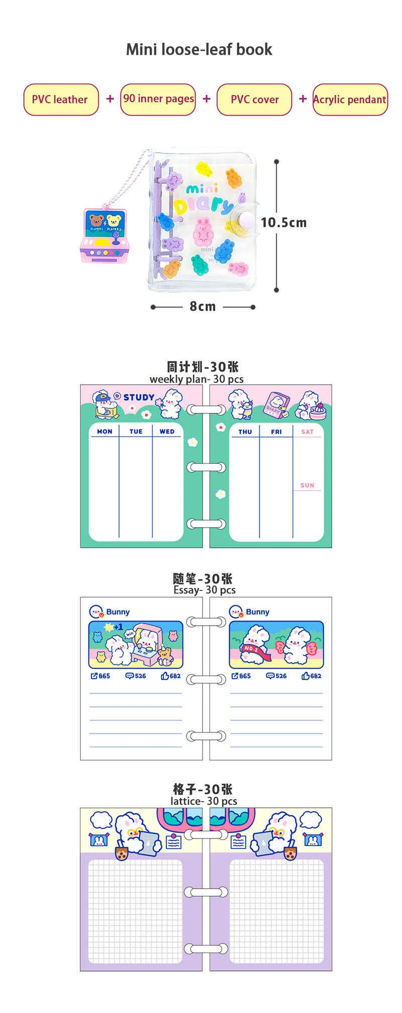 Мини-блокнот с отрывными листами, прозрачный, с 3 кольцами