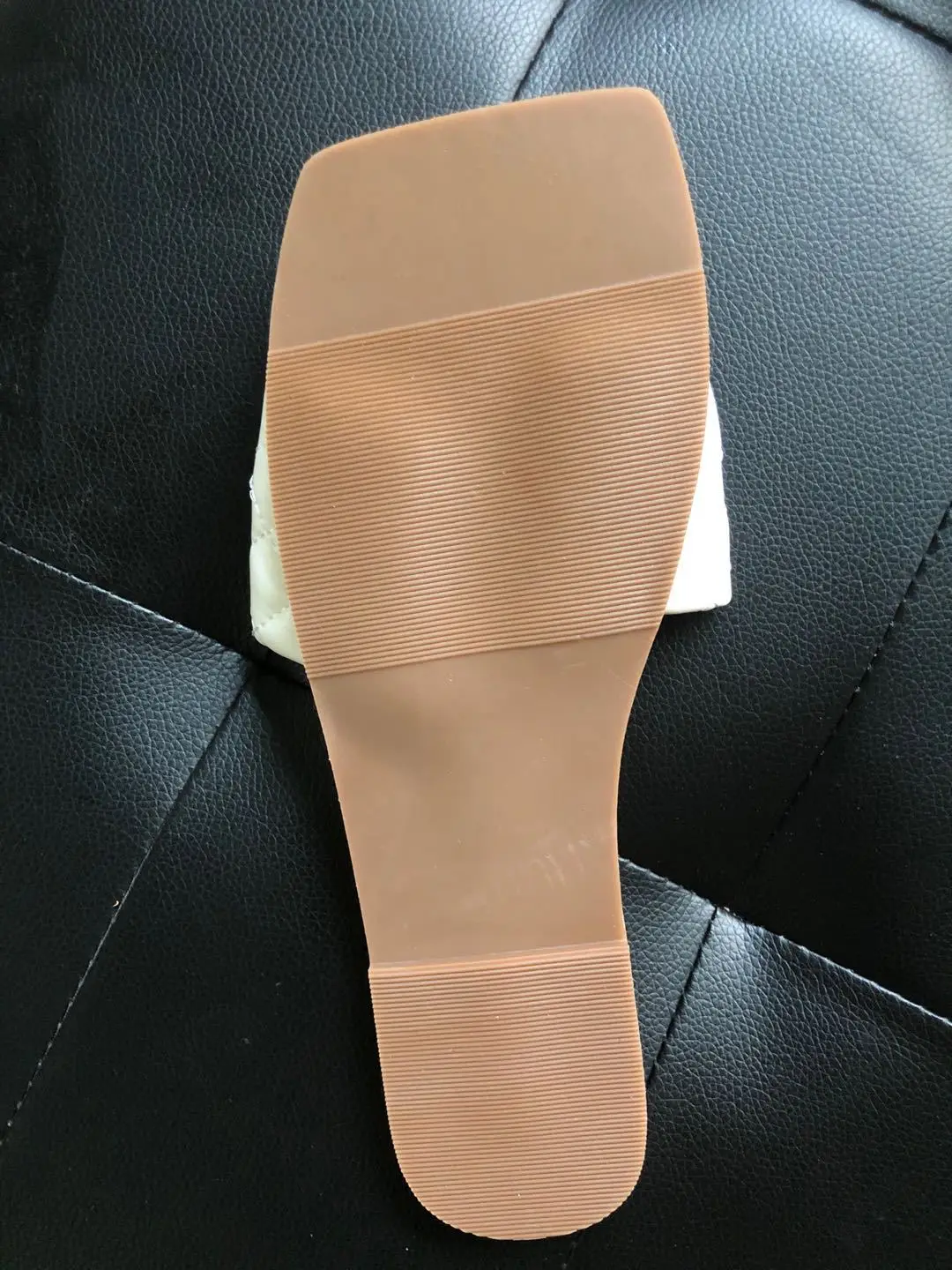 Шлепанцы женские из натуральной кожи, на плоской подошве, с квадрат...