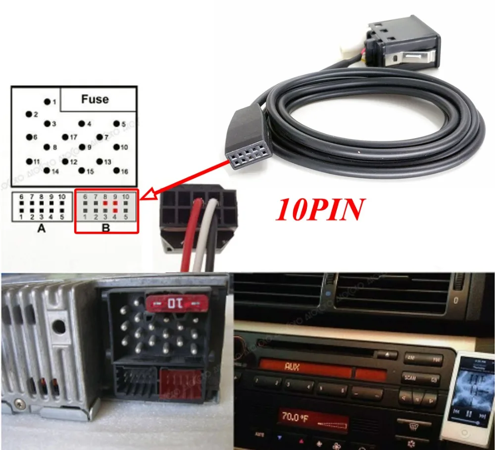 Автомобильный оригинальный сменный адаптер для CD-чейнджера, AUX IN, USB-интерфейс, жгут, Кабель-адаптер для BMW E46, 10-контактный AUX-порт