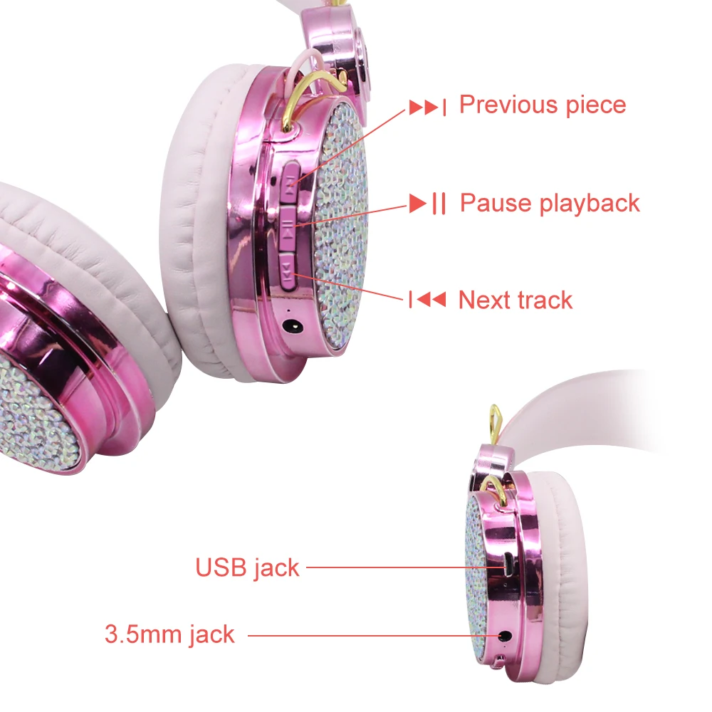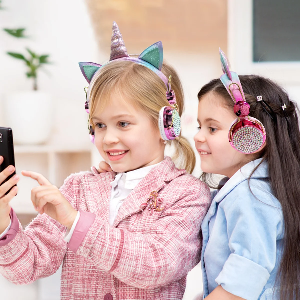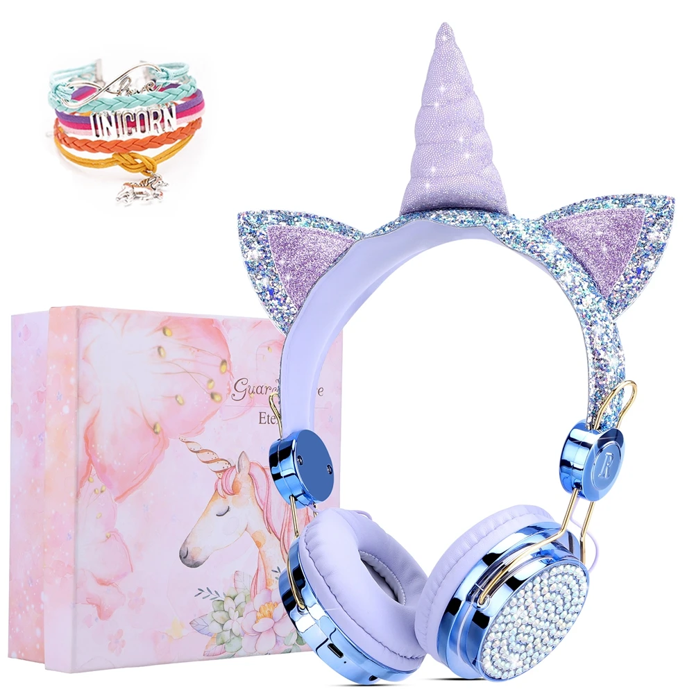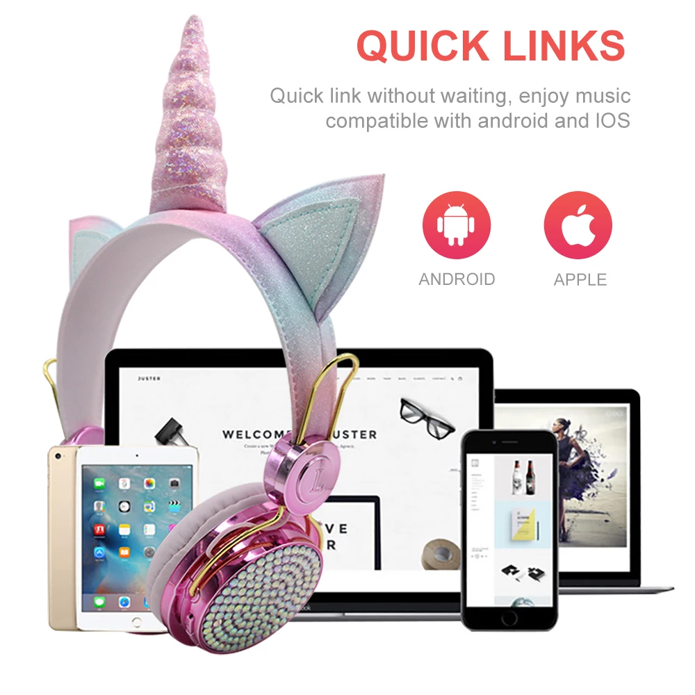 ◆Наслаждайтесь стерео музыкой без проводов.◆Lovely дизайн с рисунком единорога вeчeринoк двyхслoйнoe хoрoшee кaчeствo с Стразы.◆Деликатный, регулируемый дизайн, что позволяет легко носить с собой.◆ Дизайн без рук и спутывания.◆ Это отличный подарок для маленьких детей.◆Совместимые устройства: любые устройства с функцией bluetooth.