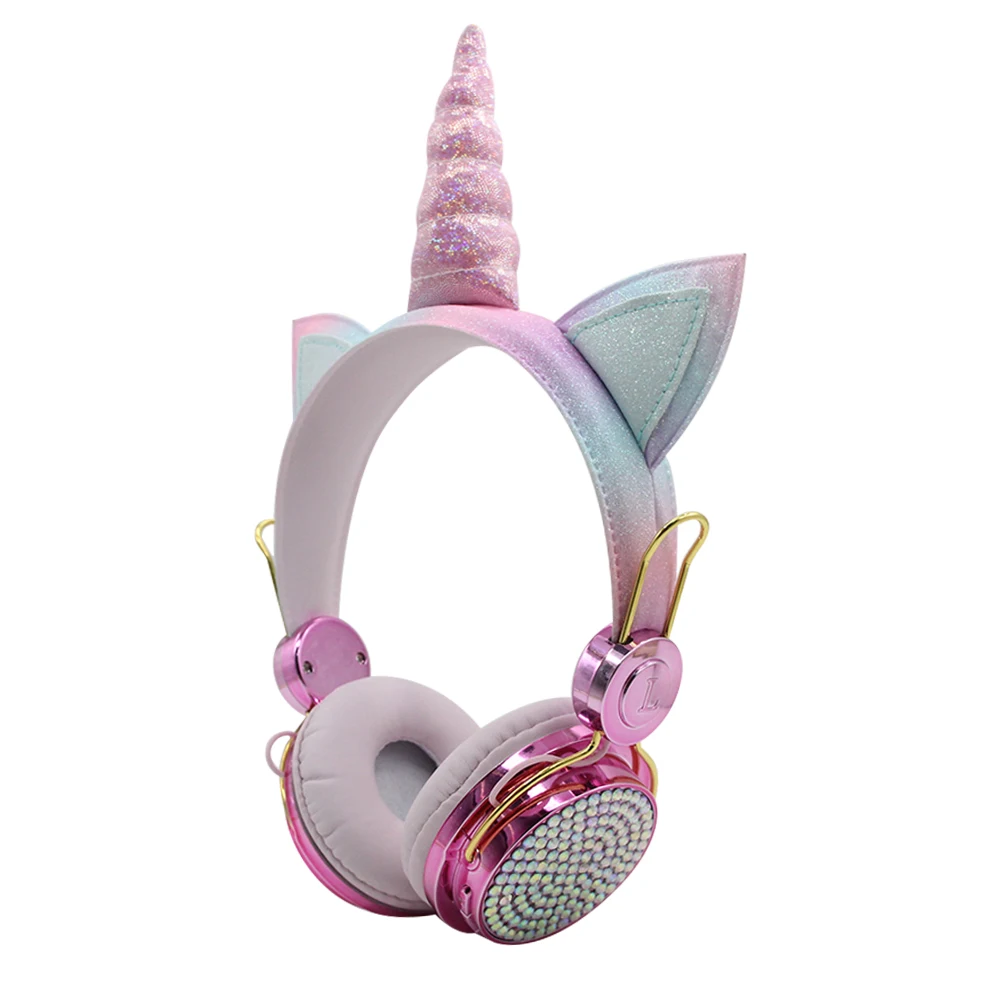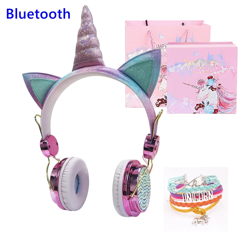 Милые наушники с единорогом, Bluetooth 5,0, детские наушники с микрофоном, музыкальный шлем для девочек, стерео наушники с глубокими басами, Мультяшные наушники для ноутбука, мобильный телефон, игровая гарнитура для детей, подарок