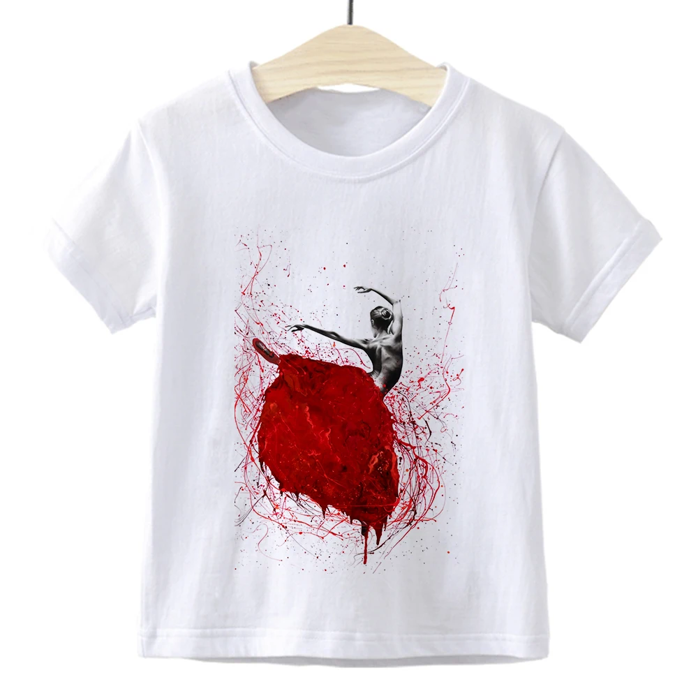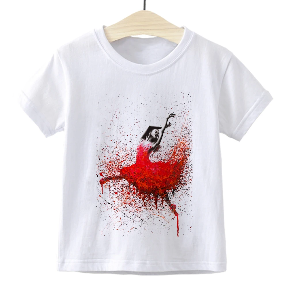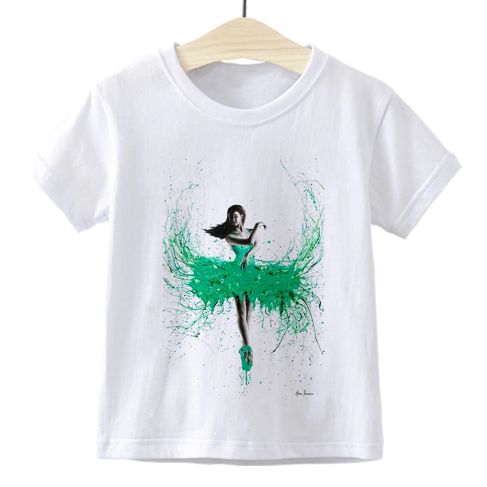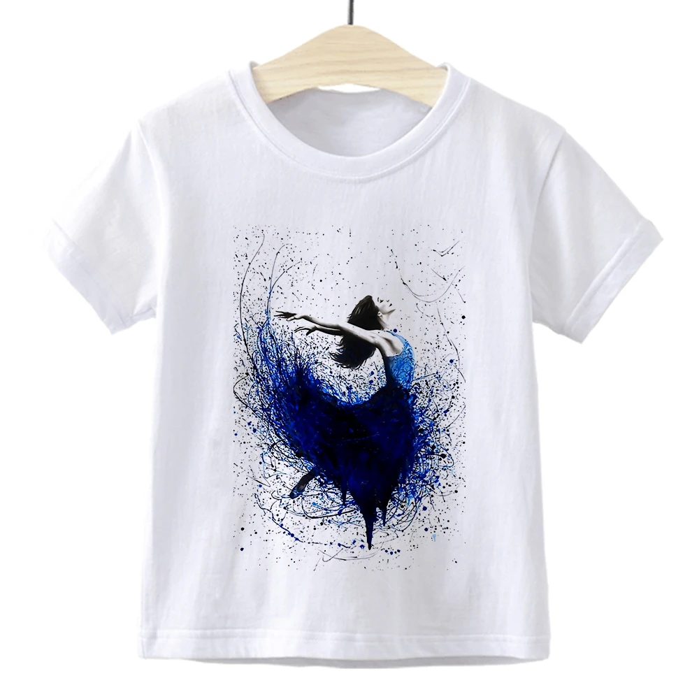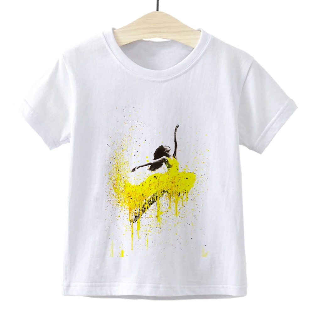Одежда для девочек, детская футболка свободного кроя с изображением танцовщицы балета, летняя детская футболка, красивые недорогие Футболки