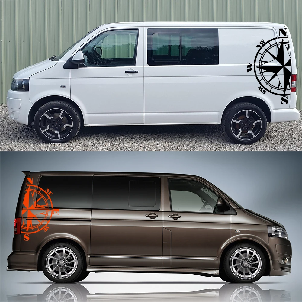 2 шт. боковые наклейки кузова автомобиля для Volkswagen VW Multivan Transporter Caravelle T4 T5 T6 на Автомобильный кузов виниловый компас наклейки аксессуары