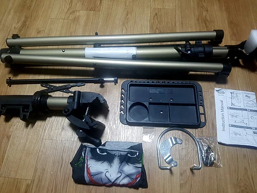 1 светильник вес из алюминиевого сплава;2. Сборка почти не требуется, поставляется из коробки, готовой к использованию;3. Компактный в сложенном виде;4. Быстросъемный и регулируемый по высоте (1-1,56 м);5. Поворотный зажим на 360 градусов позволяет установить велосипед под углом муравья;6. Конструкция с двумя ножками компактна и очень устойчива.
