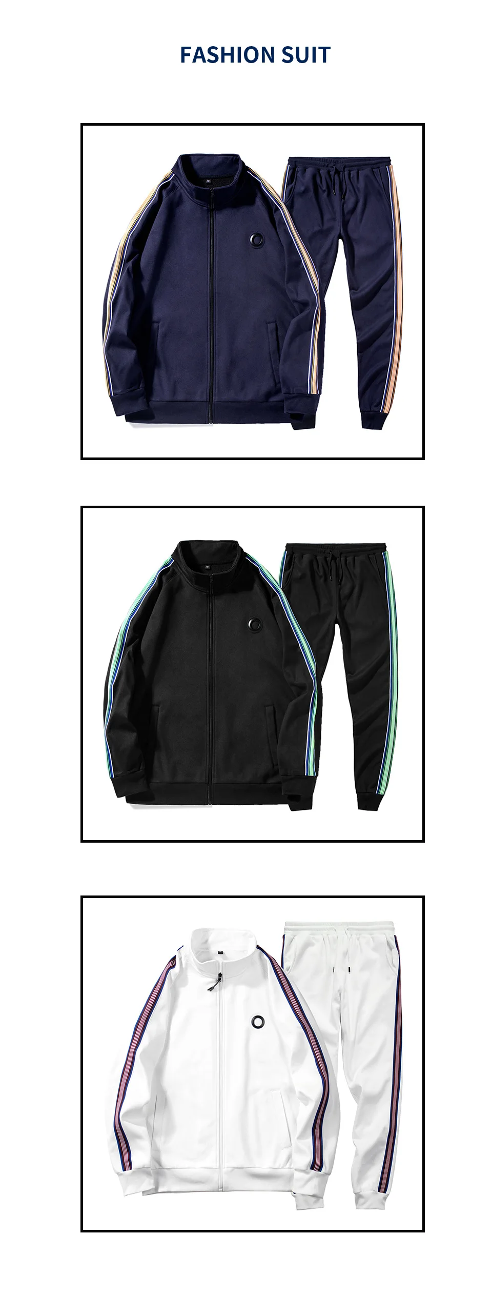 Мужской спортивный костюм, однотонный полосатый повседневный костюм...