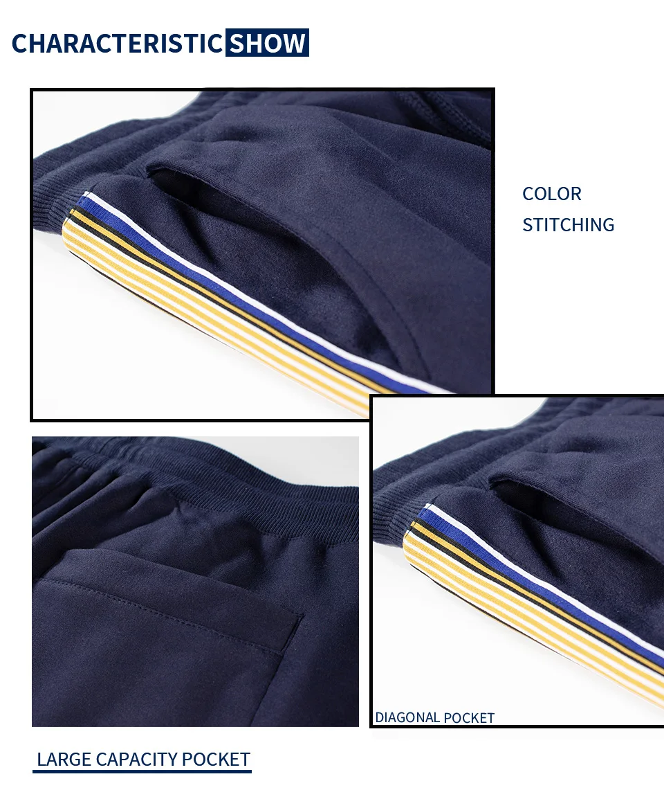 Мужской спортивный костюм в полоску сбоку, темно-синий спортивный костюм с брюками, весна-осень 2021