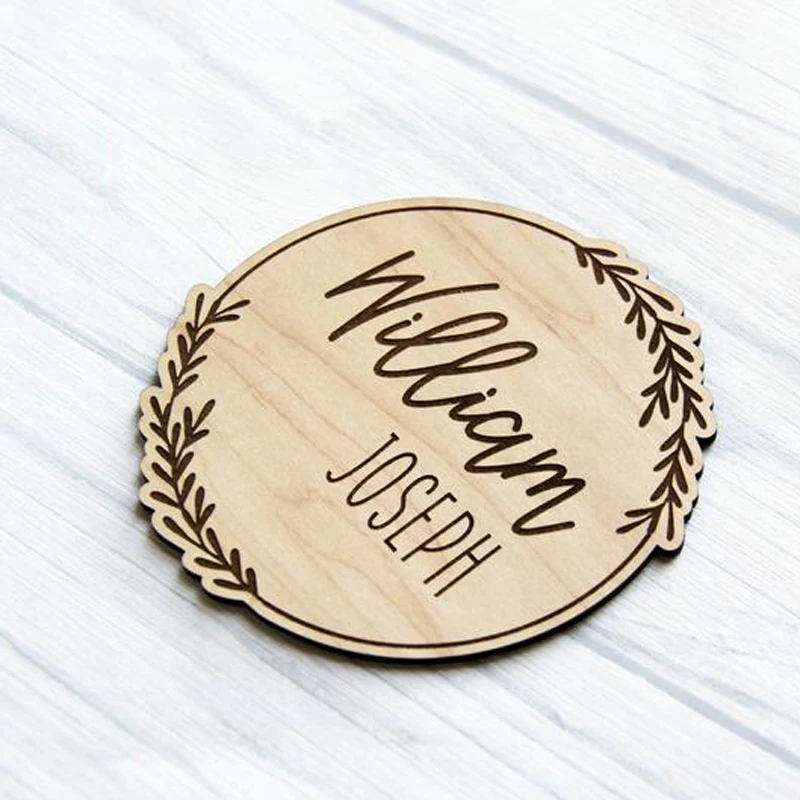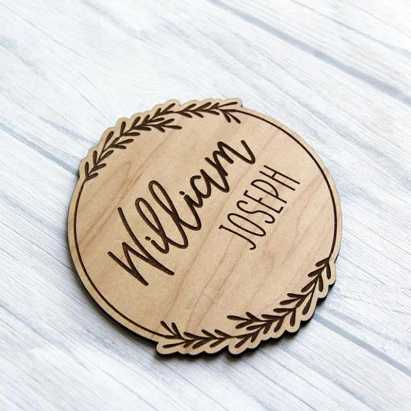 1 шт. персонализированный объявление о рождении, значок новорожденного ребенка, выгравированный знак с именем виноградной лозы, реквизит для фото, деревянное объявление о сувенире