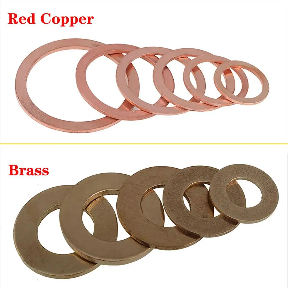 Твердая латунькрасный плоская медная шайба уплотнительная кольцевая прокладка для морских часы метрических M2 M2.5 M3 M4 M5 M6 M8 M10 M12 M14 M16 M18-M48