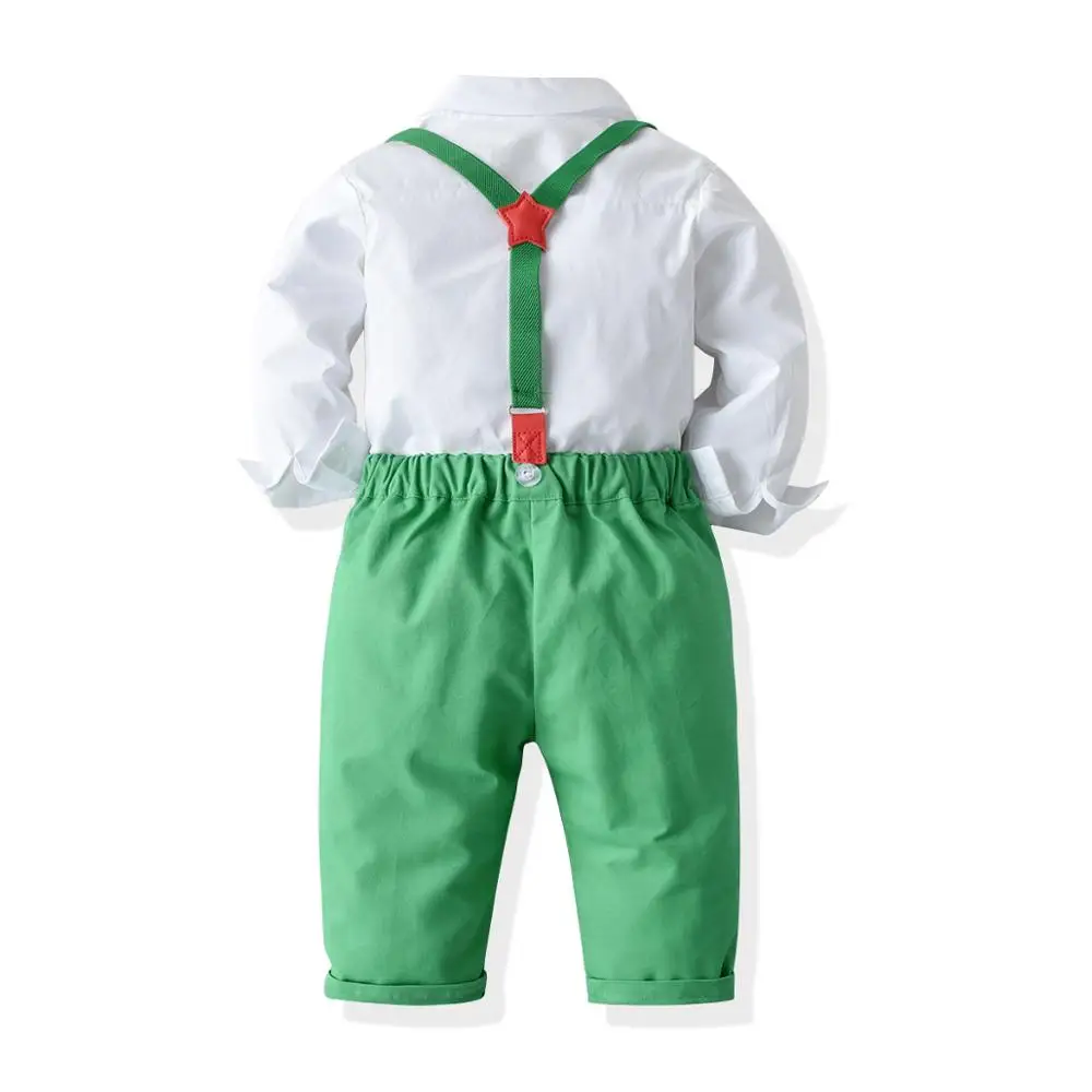Модная одежда для мальчиков, рубашка с длинным рукавом и зеленые брюки, детский осенний костюм, детская одежда, Детские Праздничные комплекты