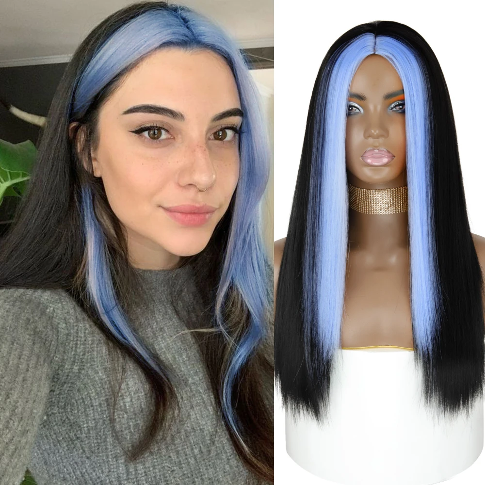 Парик AZQUEEN женский из синтетических волос, длинный, синий, с эфф...