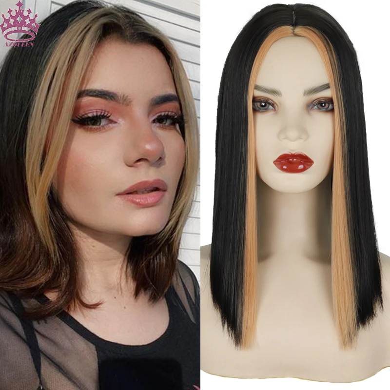 Парик из синтетических волос AZQUEEN, короткие прямые волосы, с эффектом омбре, для женщин