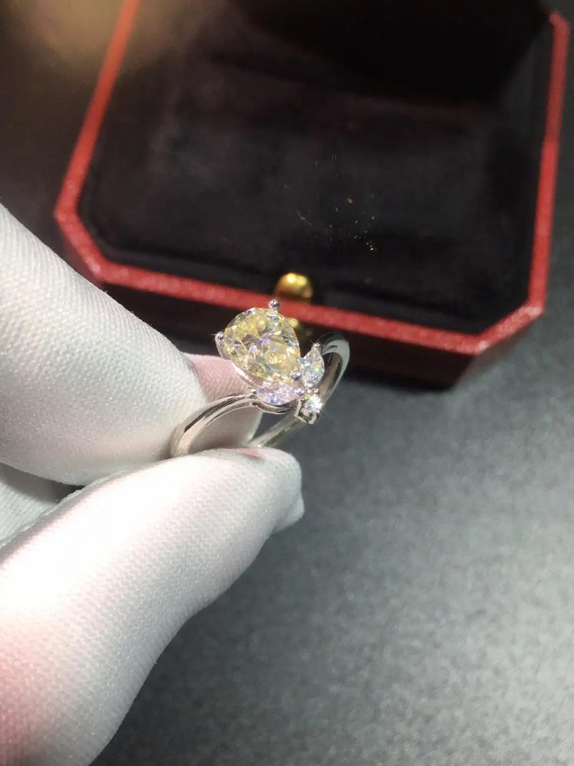 Кольцо с камнем диаметром 1,2 карата, желтое, в форме капли муассанита