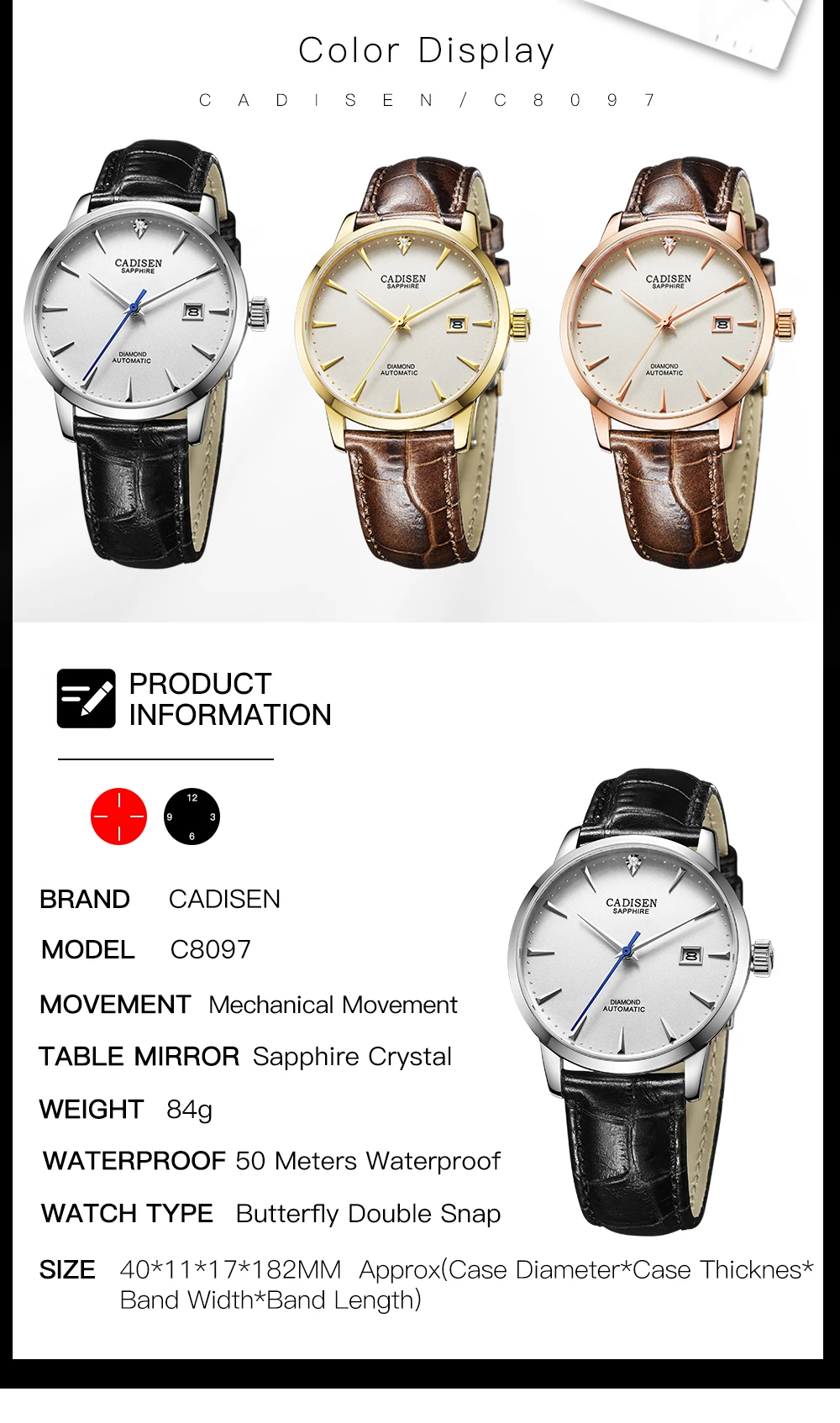 CADISEN Men WatchesAutomatic Mechanical Wrist Watch
