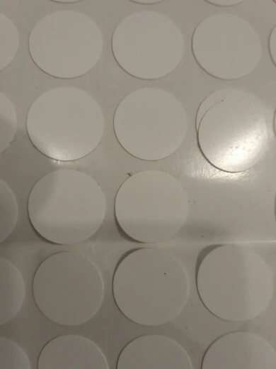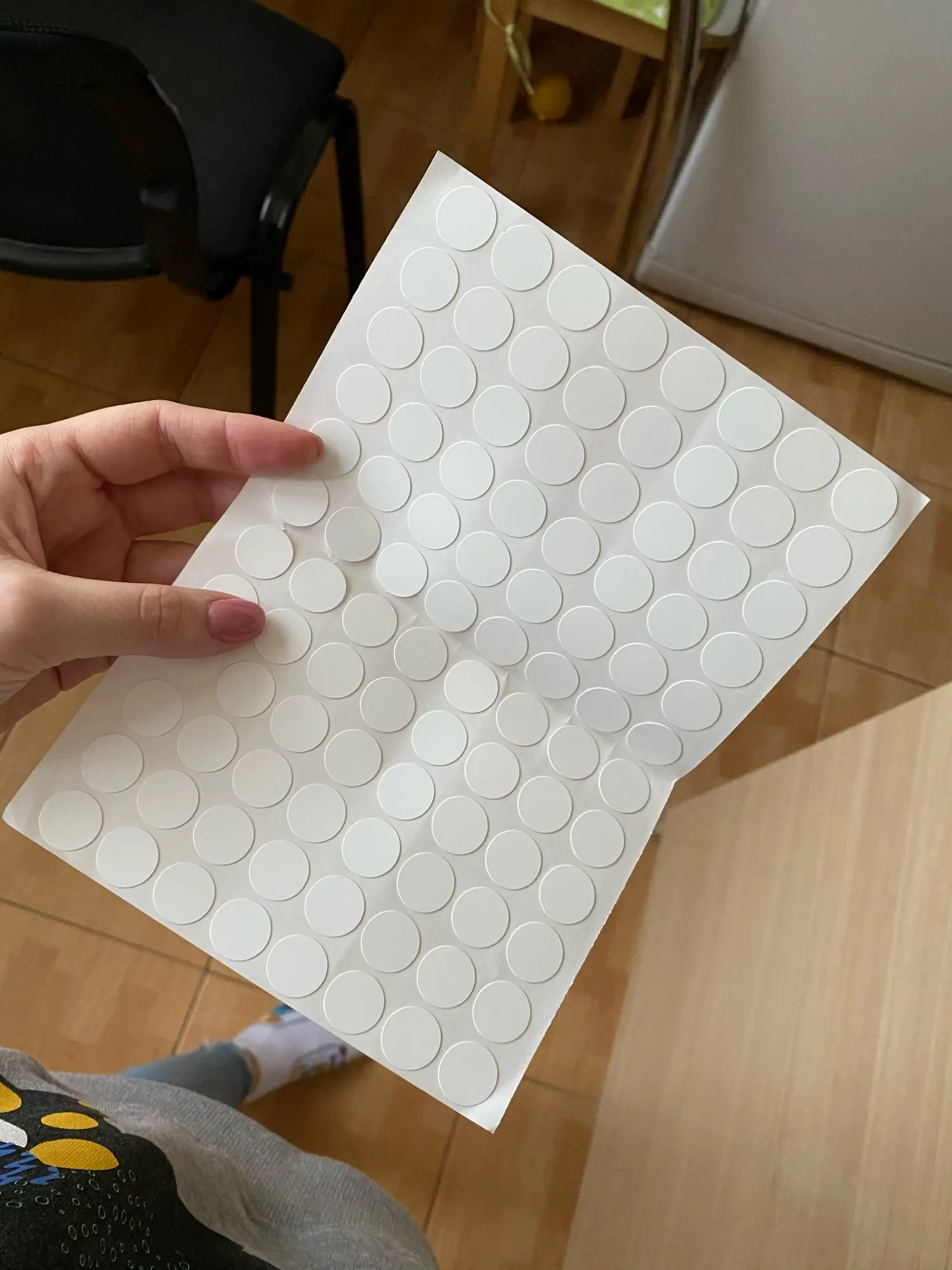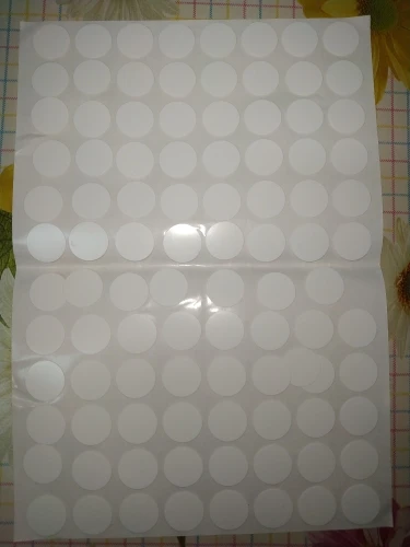Заказала в Самару 25.11.2020, получила 17.12.2020. Хорошие наклейки, держатся крепко, цвет белый. Две склеились вместе, еле оторвала и погнула - хороший клей. Купила за 63 рубля, чтобы закрыть дырки в стеллаже. Рекомендую!