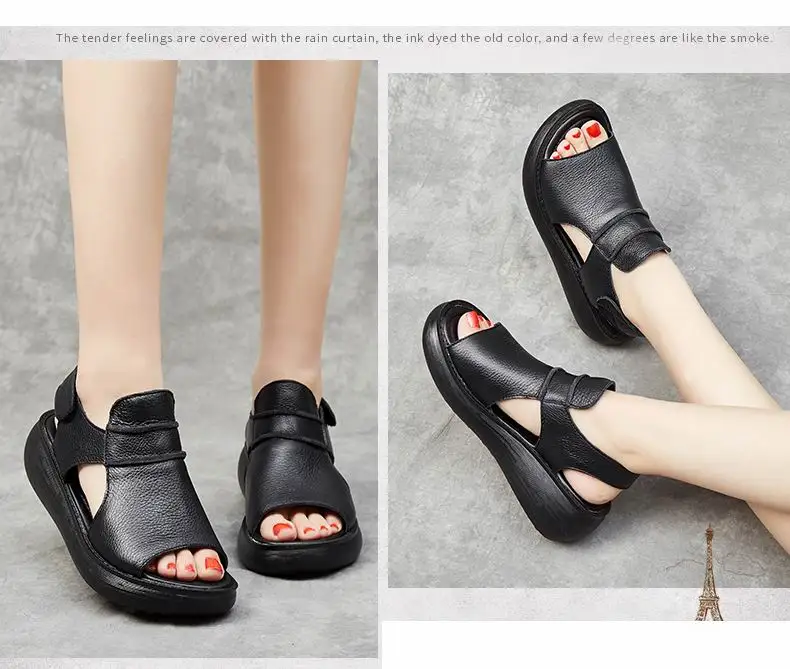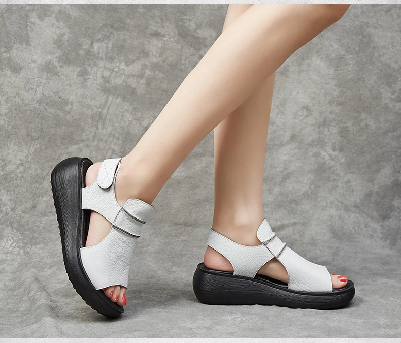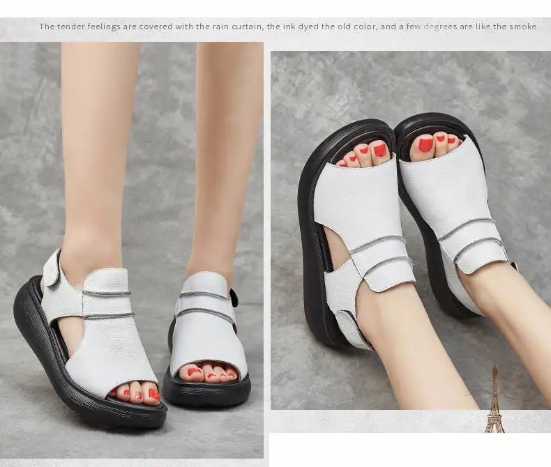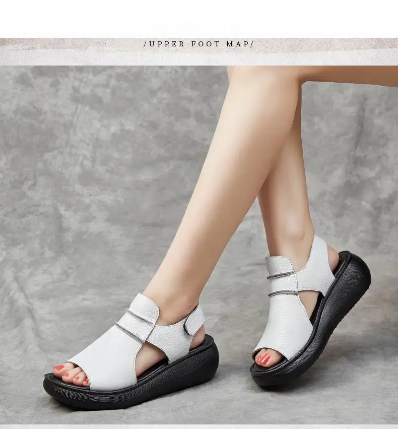 GKTINOOКоллекция 2022 года; Летние женские босоножки на толстой платформе и высоком каблуке; Модные женские босоножки из натуральной кожи на танкетке с открытым носком