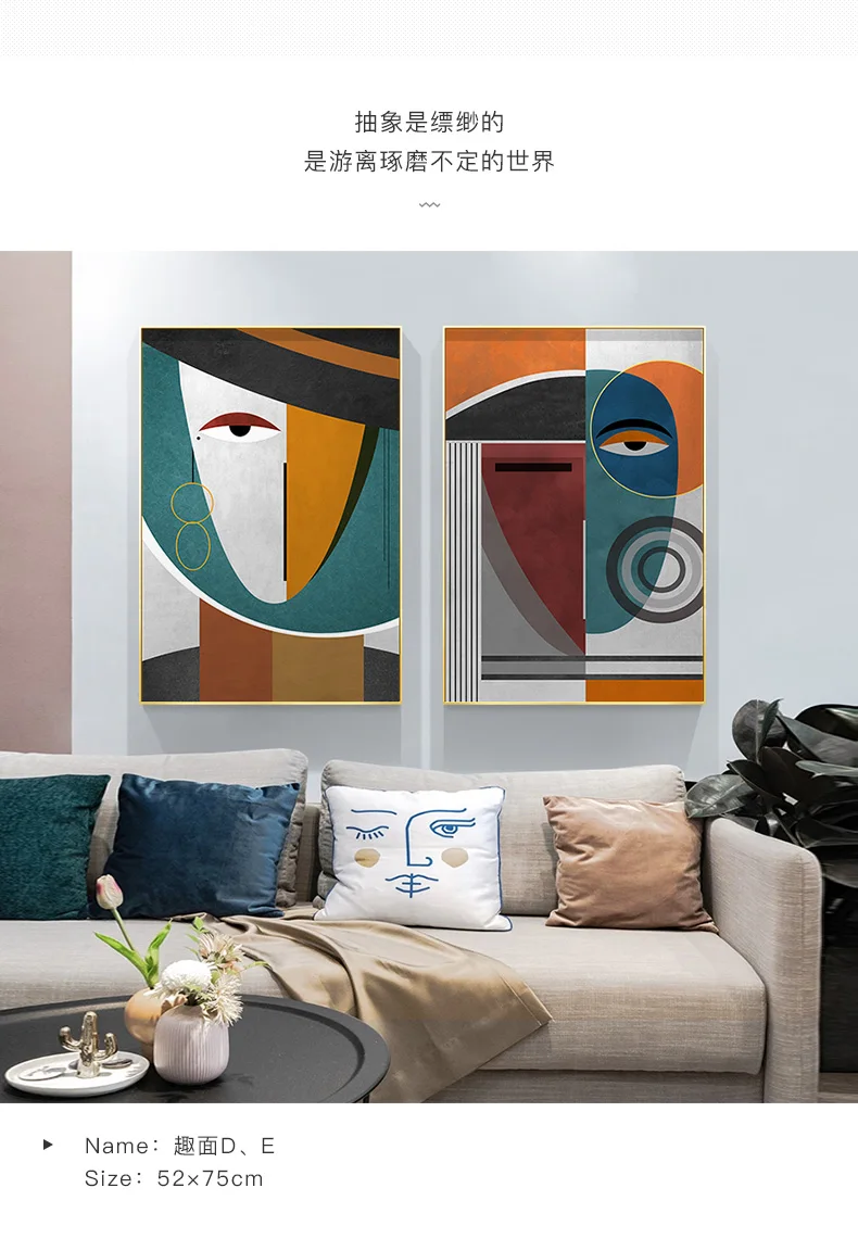 Картина на холсте, абстрактная, с геометрическими фигурами, современное искусство, плакат, принт, лицо, Настенная картина для гостиной, домашний декор