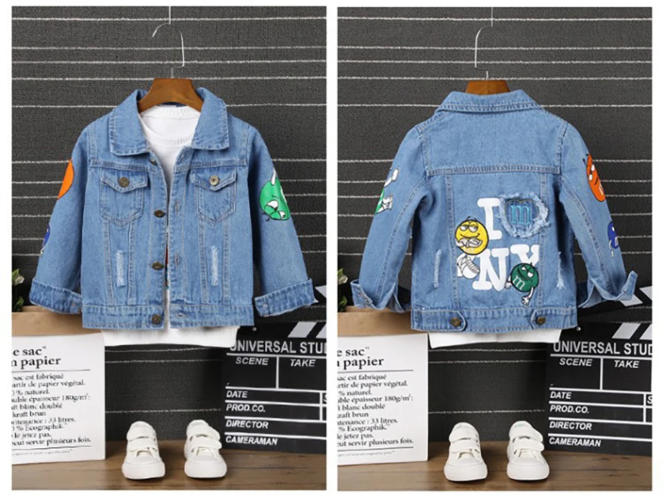 Детские джинсовые куртки для девочек, пальто для малышей осенне-Весенняя джинсовая куртка с вышитыми буквами для маленьких девочек топы для маленьких девочек, детская джинсовая верхняя одежда