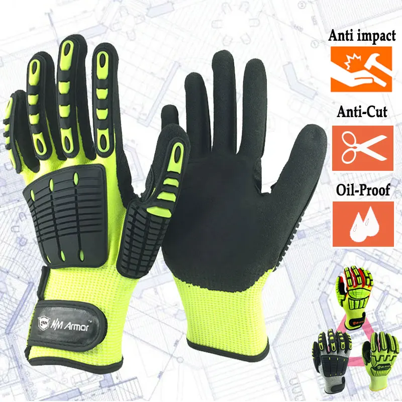 100% Высококачественные антивибрационные защитные рабочие перчатки с лучшим захватом, нитриловые ладони, устойчивые к порезам, рабочие перчатки механики