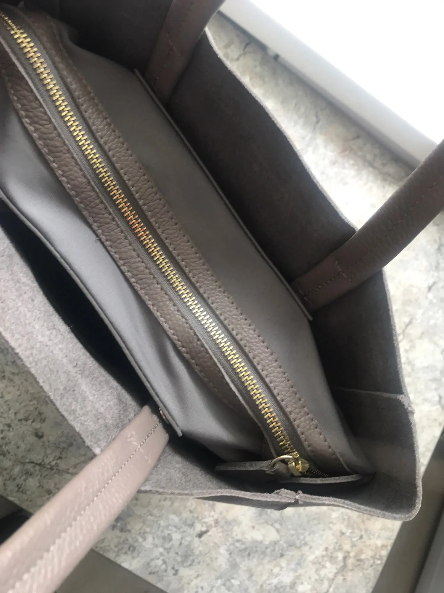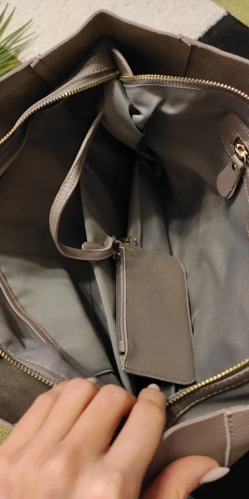 Сумка очень понравилась! Качество кожи и пошив добротный, все строчки ровные, фурнитура хорошего качества. Точно подобран цвет подкладки и внутренней сумки из текстиля. Цвет сумки серо-коричневый, называется "тауп", что делает её более универсальной для разных образов. Размер средний, не маленький и вместительный. Удобно сидит на плече. Спасибо продавцу за отличный товар и сервис! Отправили и доставили очень быстро: одна неделя и сумка у меня. Советую к покупке