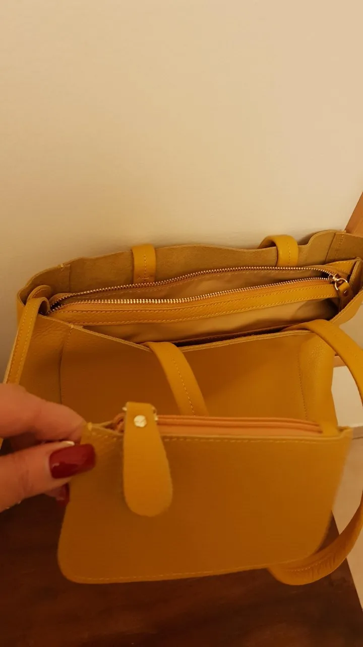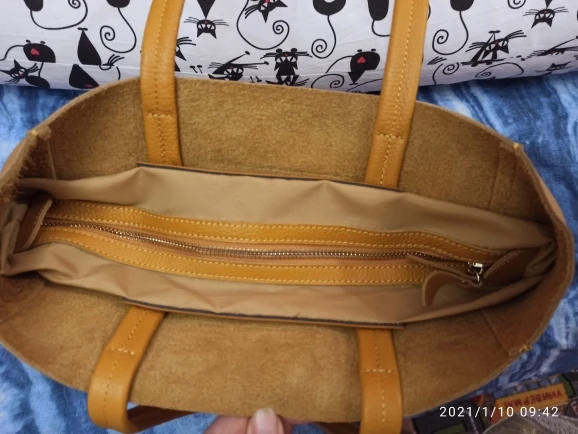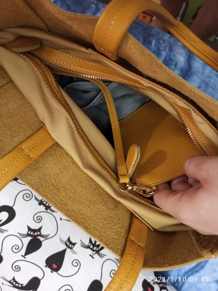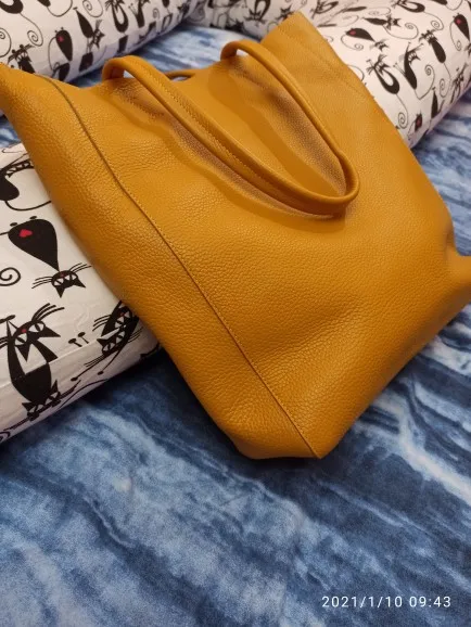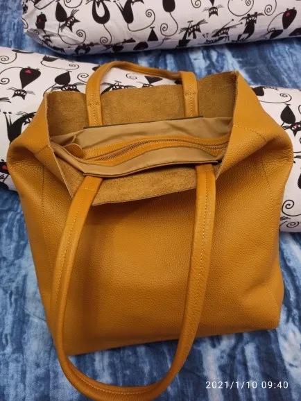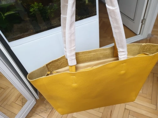 Сумка превзошла ожидания! Грамотно упаковали товар, пришла в нескольких пакетах, без заломов. Качество отличное, все замочки, швы, срезы - обработаны отлично. Яркий солнечный горчичный цвет очень круто смотрится.