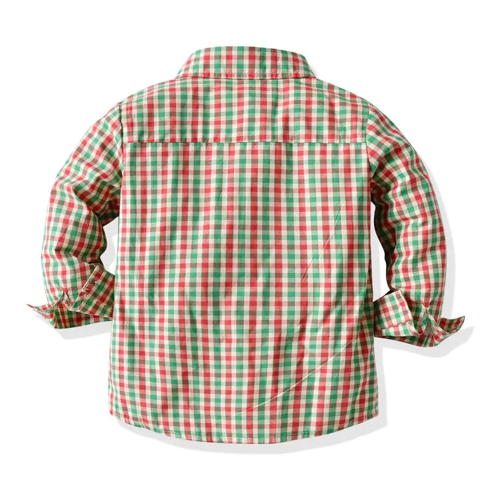 Осенняя одежда для мальчиков комплект одежды для детей, рождественское платье для девочек клетчатая рубашка с красным ремнем + штаны детская длинная одежда с рукавами, на возраст 1, 2, 3, 4 лет От 5 до 6 лет