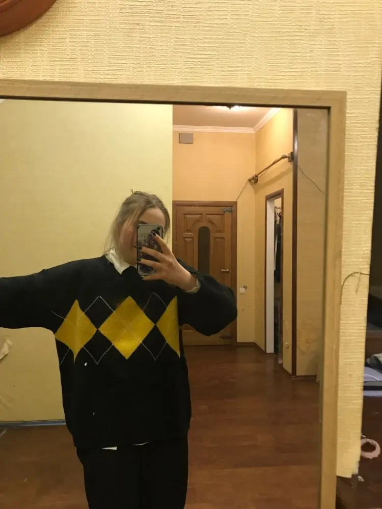 Ну что вы делаете, теперь это мой самый любимый свитер и лучшая покупка за всё время. Очень качественный и тёплый, довольно широкий, ну и попец закрывает. На 167/58 идеалити, я очень счастлива. Рисунок с двух сторон, но от этого он нисколько не хуже. ✨