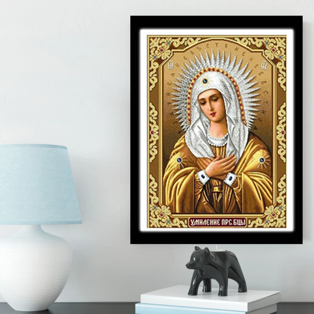 Картина с частичным заполнением, обычно только лик нарисован. По факту собирать надо только богородицу, всё остальное нарисованно. Заказом не довольна.