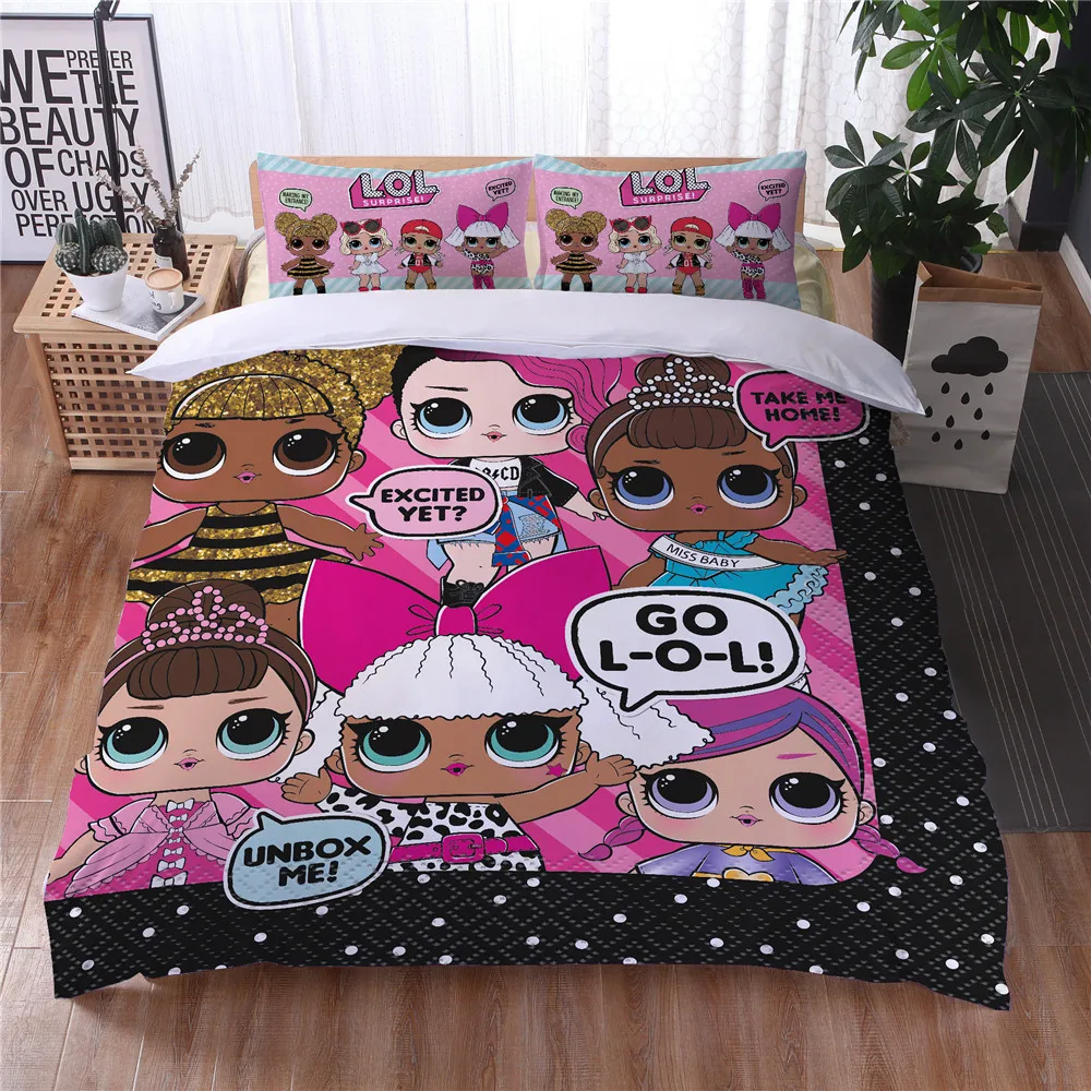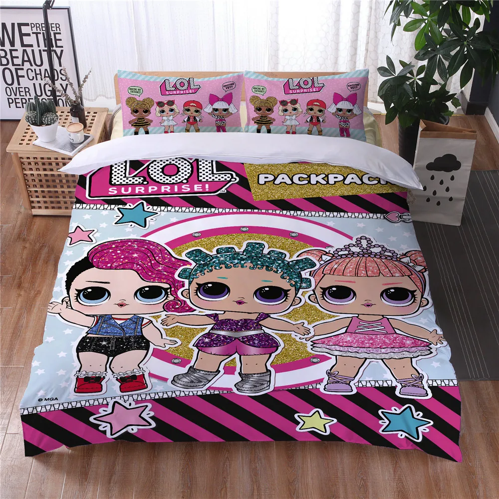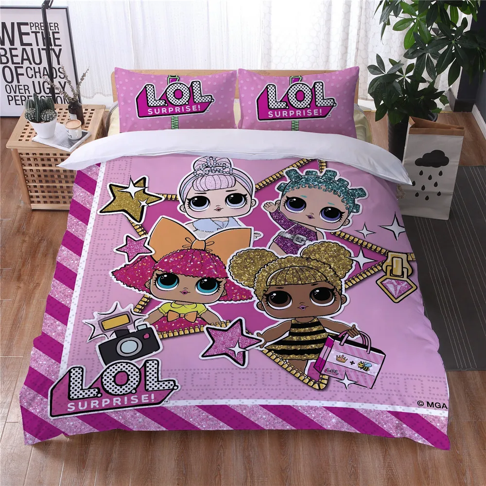 Куклы-сюрпризы LOL для кровати для девочек, Детский комплект пододеяльников, подушек, чехол, одеяло, комплекты постельного белья из аниме полиэстера, мягкие и 3 шт.
