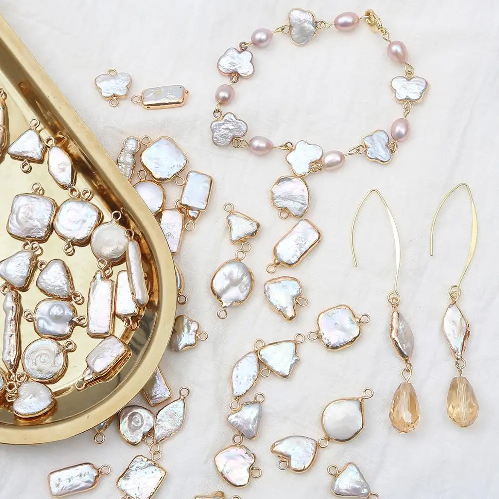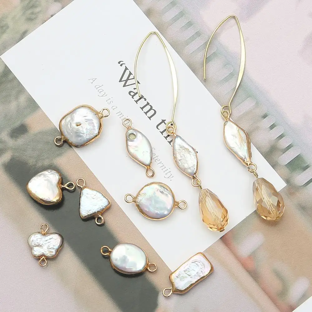 Соединитель для подвесок из натурального пресноводного жемчуга, для изготовления браслетов и ожерелий, ювелирных изделий сделай сам, комплектующие для серег, 1 шт.