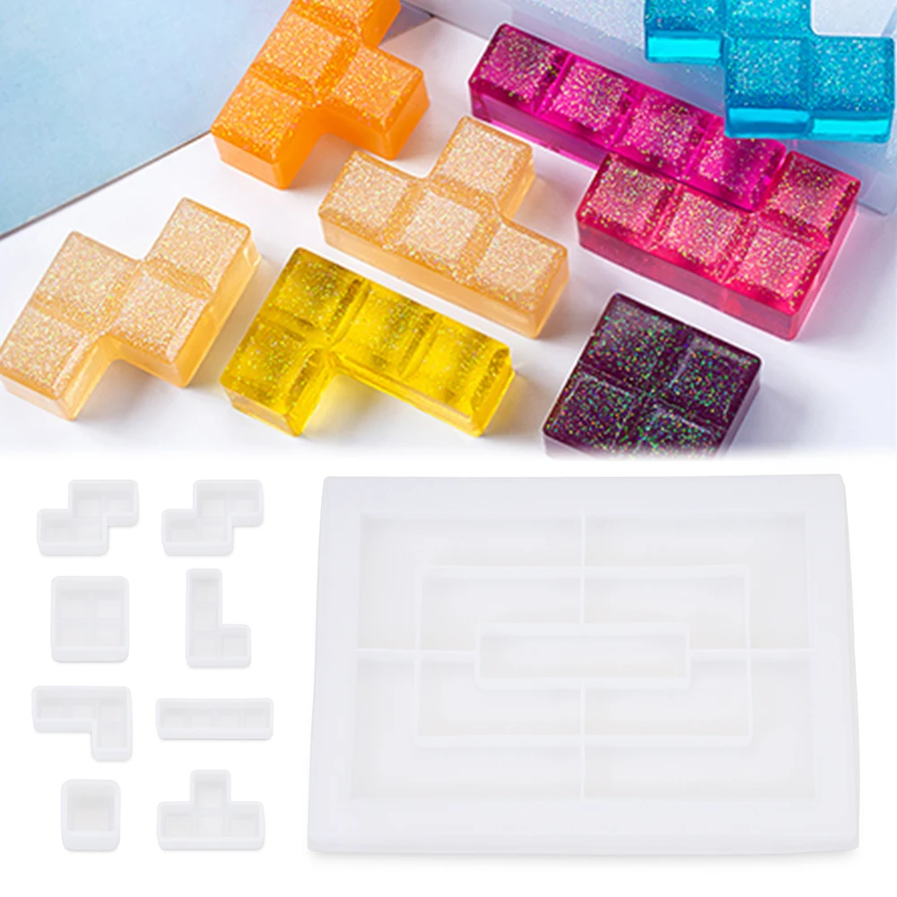 DIY Tetris прессформа кристаллическая эпоксидная смола, форма, зеркало ручной работы, креативная силиконовая форма для украшения стола из смолы, инструменты для изготовления ювелирных изделий