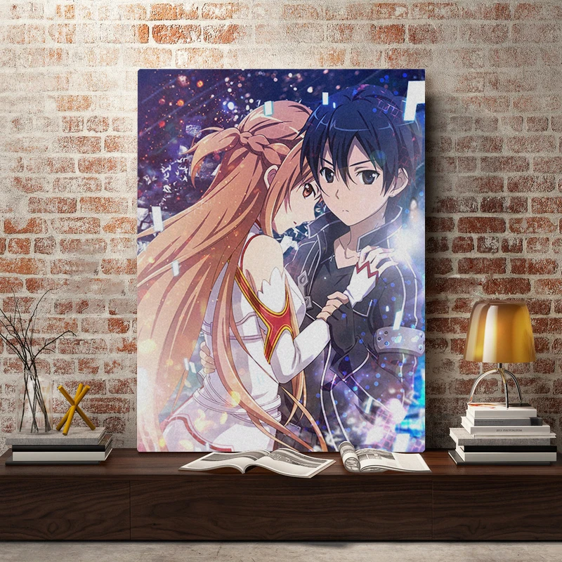 Меч искусство онлайн Холст плакат настенное искусство Kirito and Asuna модульная Hd печать картина домашний декор аниме картины для гостиной