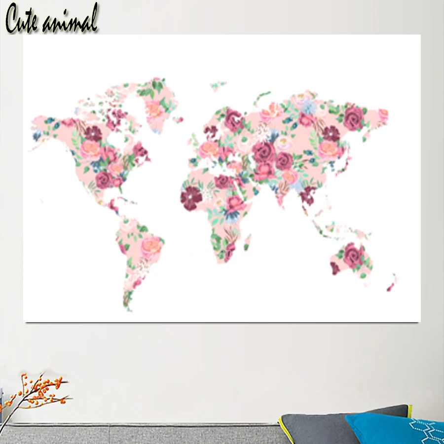 5D DIY Алмазная картина карта мира розовая роза цветок полная квадратная дрель Алмазная мозаика Вышивка крестом Алмазная вышивка домашний декор