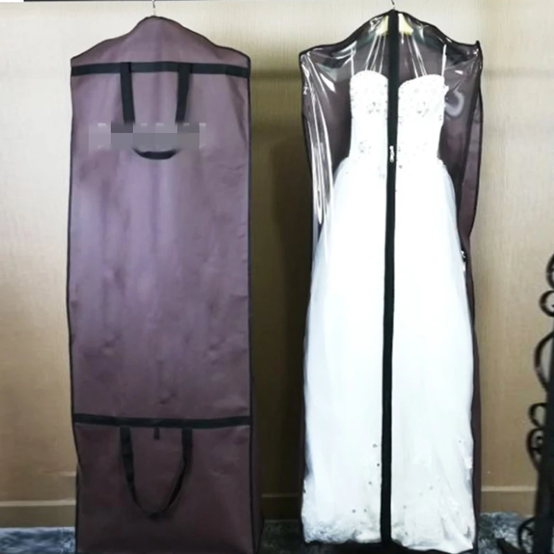 Пылезащитный чехол для свадебного платья, пылезащитная сумка для вечернего платья, подвесная двойная сумка для хранения одежды, Сумка с принтом логотипа на заказДлина: 170 см, ширина 60 см, ширина по бокам (Ширина дна) 30 см