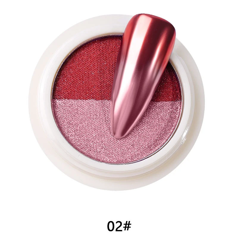 Двухцветный однотонный хамелеон, дизайн ногтей, лазерный эффект, блестящий, Chrome зеркальный ногтевой порошок