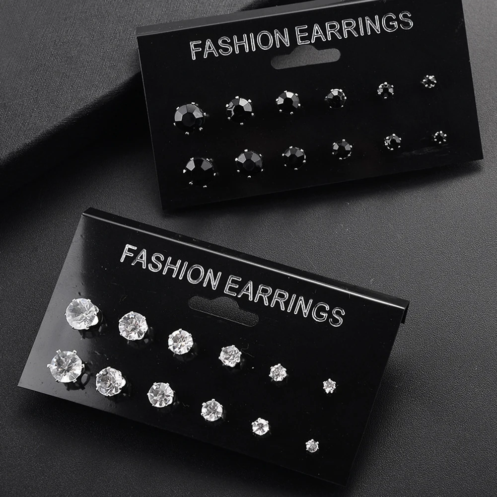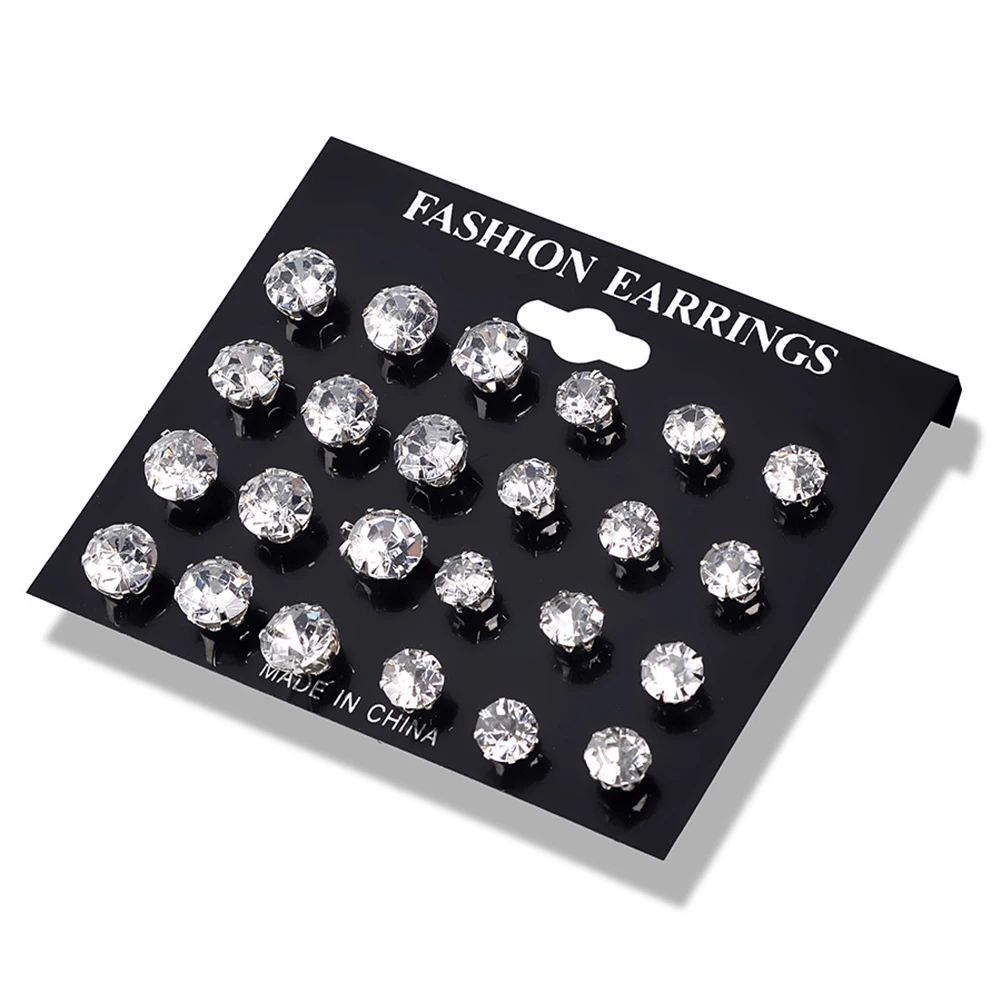 Серьги-гвоздики мужские, с кристаллами, 12, парупак., AAA, CZ, Комплект сережек для женщин