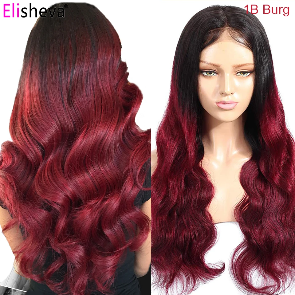 Парик с фронтальной волной 1B/27 Омбре, парик с фронтальной кружевной отделкой, человеческие волосы, перуанские волнистые парики для человеческих волос Remy, парики для черных женщин